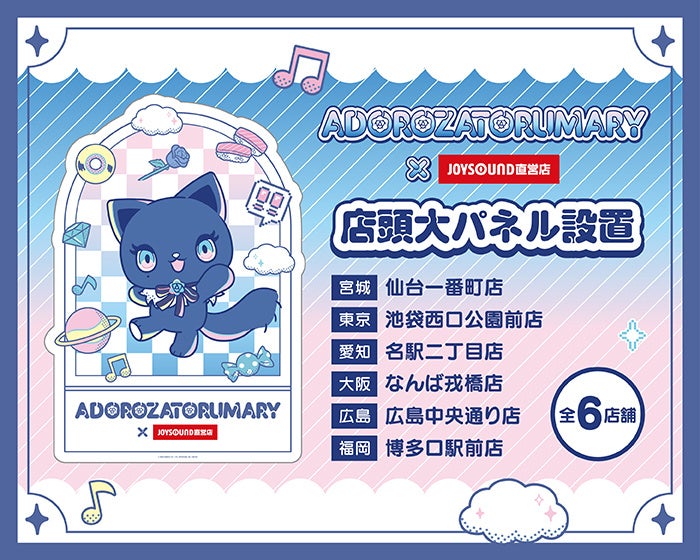 仙台一番町店・池袋西口公園前店・名駅二丁目店・なんば戎橋店・広島中央通り店・博多口駅前店の6店舗に、「アドローザトルマリィ×JOYSOUND直営店」オリジナル店頭大パネルを設置!