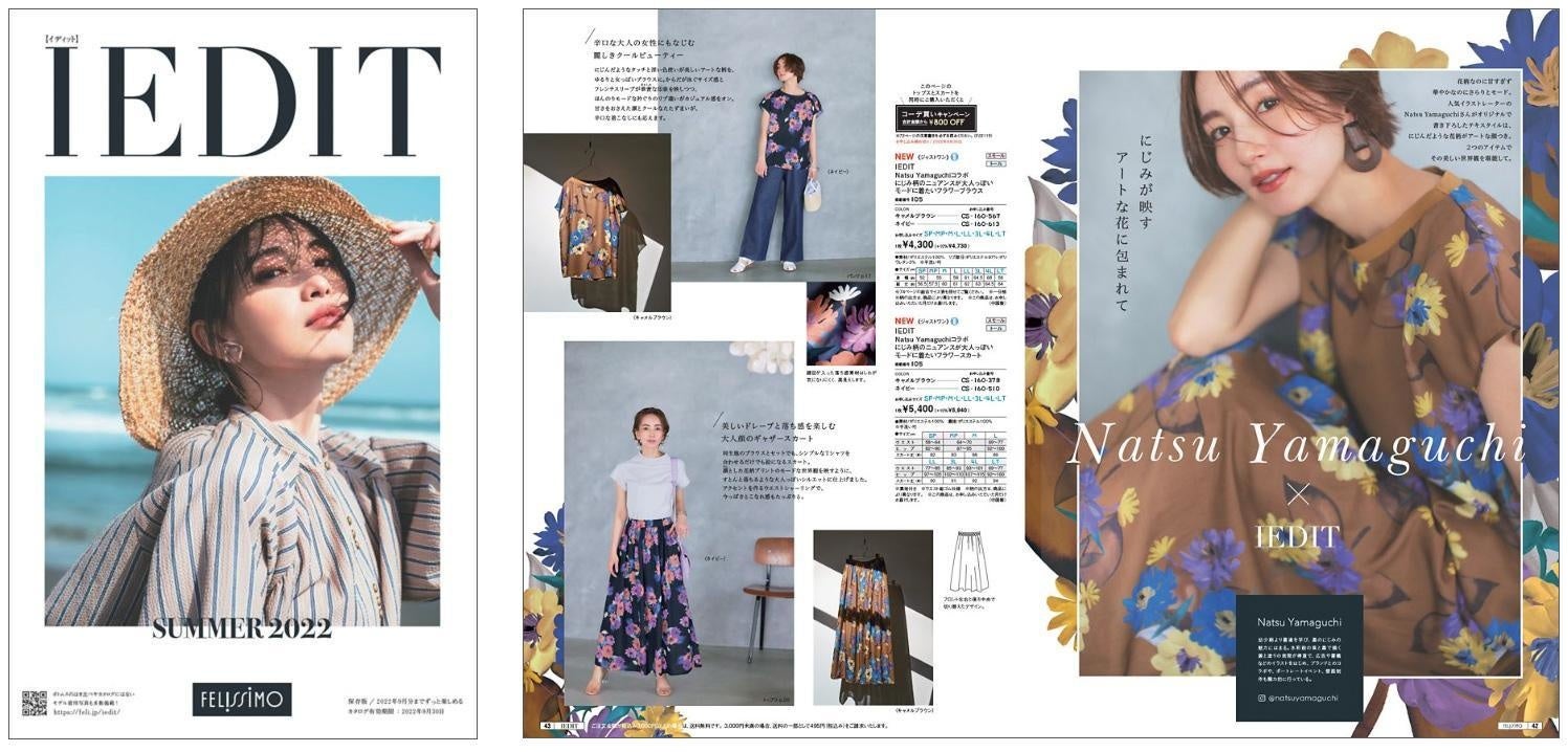 フェリシモが展開する、ファッションブランド「IEDIT[イディット]」は、イラストレーターNatsu Yamaguchiとのコラボレーションアイテムを発表、6月8日よりウェブ販売を行っています。Natsu Yamaguchi氏は水彩絵の具や墨を使ったイラストを得意とするアーティストです。彼女が描いた花柄をテキスタイルに落とし込み、アートな世界観あふれるブラウスとスカートに仕立てています。詳細は、ウェブサイトやデジタルカタログでチェックできます。併せて、特別キャンペーンも開催しています。