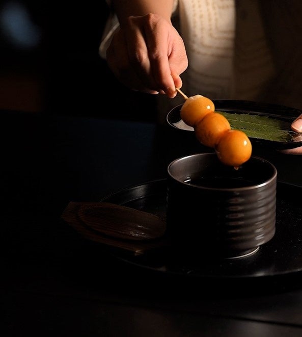 京人参、海老芋、聖護院かぶ、九条ねぎなど京都の冬は野菜の宝庫。メニューには甘味も滋養もたっぷりの野菜が様々な形で盛り込まれています。自家製の団子はあたたかいみたらしあんに浸してお召しあがりいただきます。
