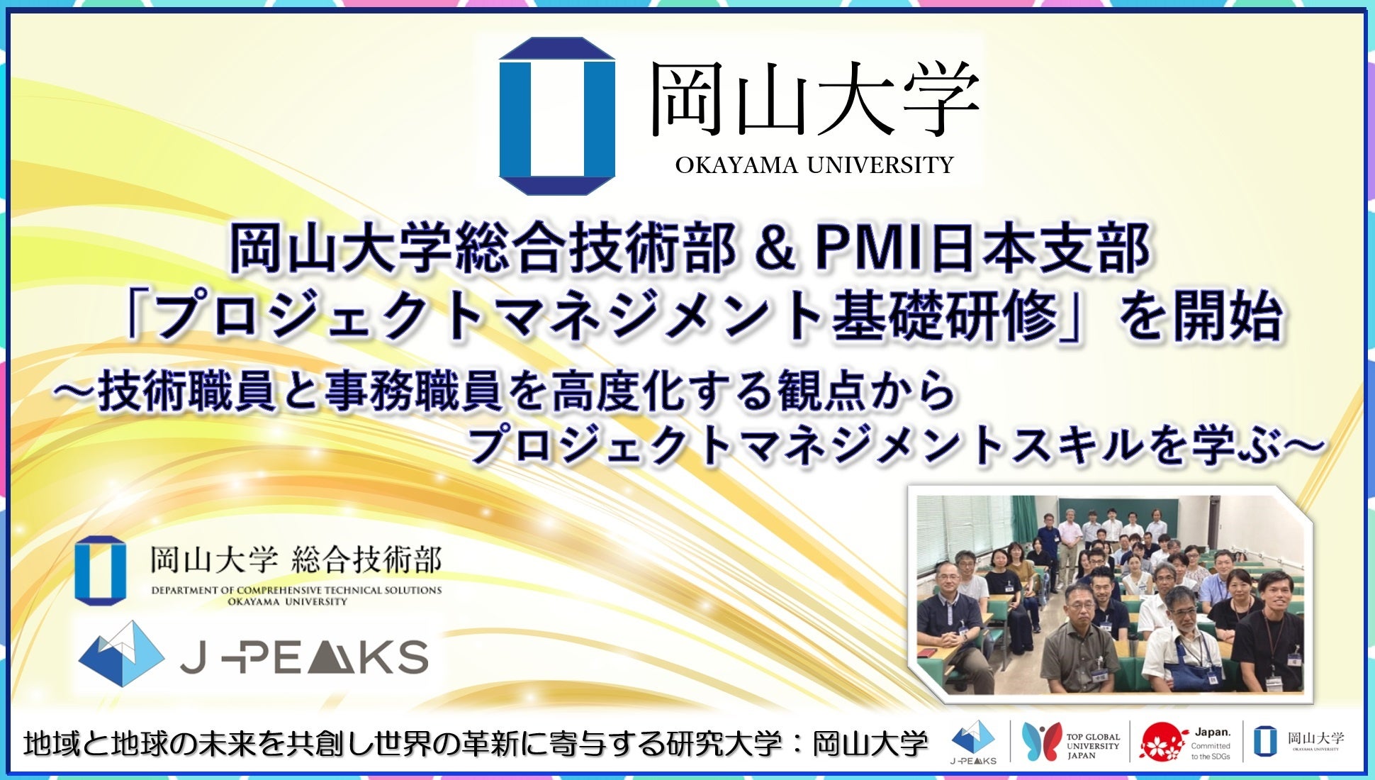 【岡山大学】岡山大学総合技術部 & PMI日本支部「プロジェクトマネジメント基礎研修」を開始~技術職員と事務職員を高度化する観点からプロジェクトマネジメントスキルを学ぶ~