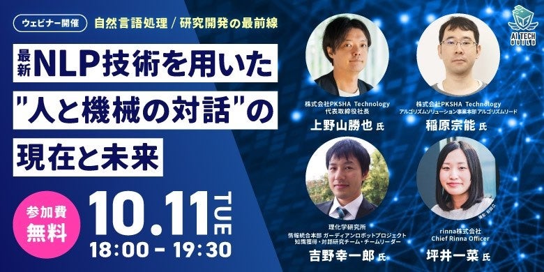 自然言語処理のトップランナーたちが最先端のナレッジをシェア!10/11(火)無料セミナー「最新NLP技術を用いた“人と機械の対話”の現在と未来」