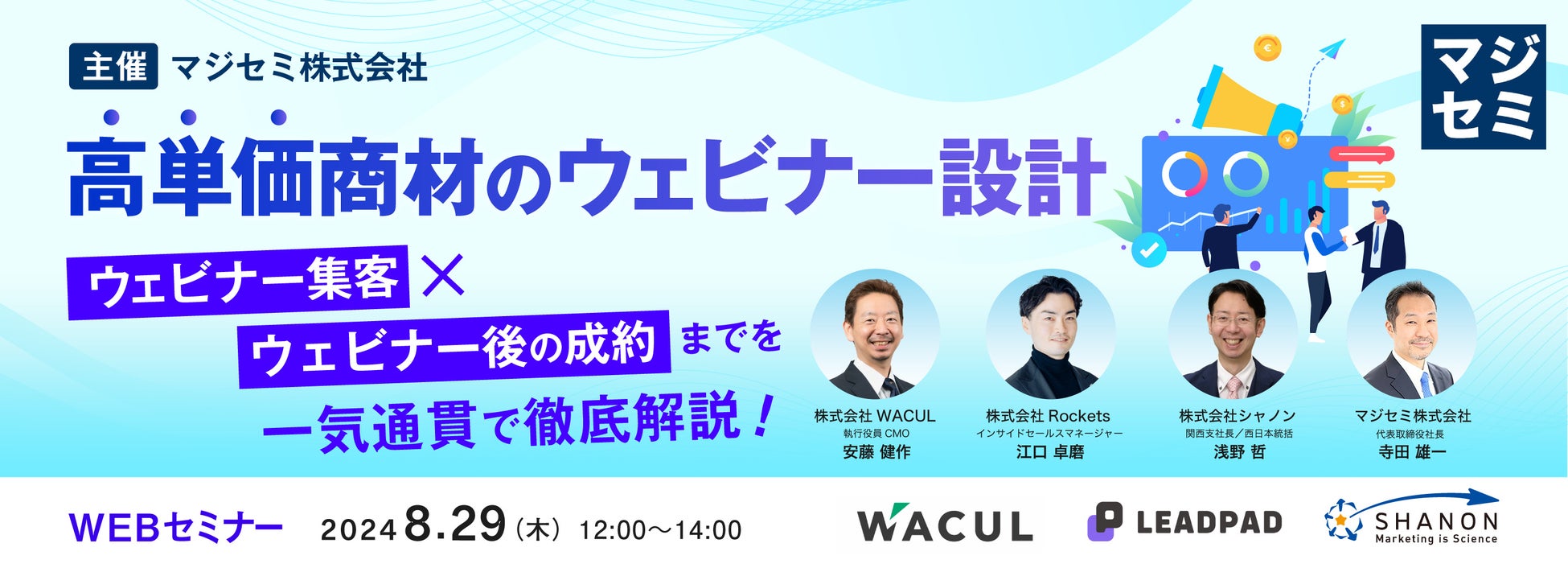 マジセミ株式会社は「高単価商材のウェビナー設計」というテーマのウェビナーを開催します。