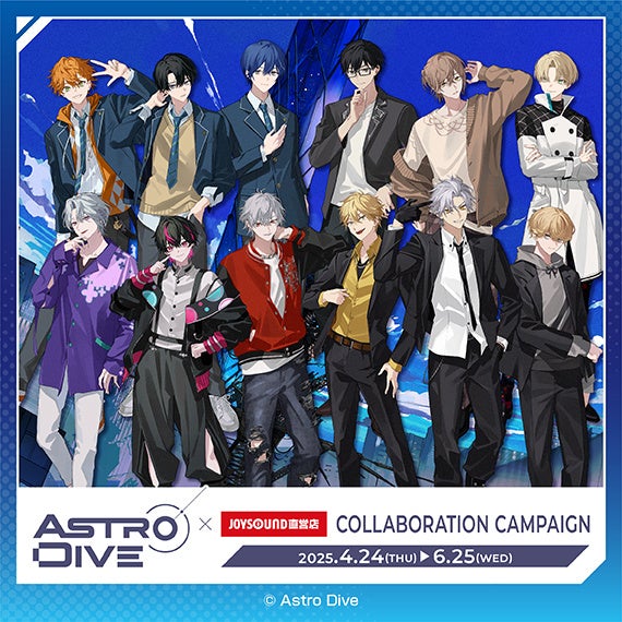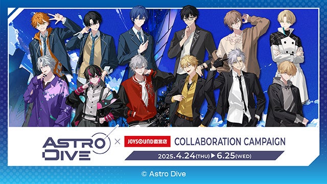 株式会社エクシングの子会社で、全国にカラオケ店舗・ネットカフェ店舗を展開する株式会社スタンダード(本社:東京都港区、代表取締役社長:小林克章)は、2025年4月24日(木)から2025年6月25日(水)までの期間中、「Astro Dive×JOYSOUND直営店コラボキャンペーン第2弾」と題し、JOYSOUND池袋西口公園前店(東京)にデジタルコラボルームをオープンします!また、JOYSOUND直営店30店舗にて、オリジナルノベルティ付きコラボドリンクを展開します。