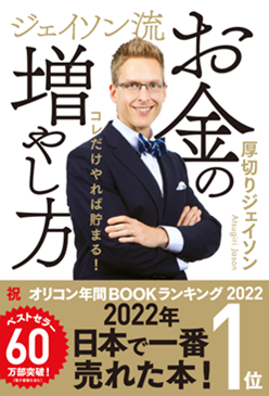 平素は大変お世話になっております。2021年11月12日にぴあ株式会社より発売した厚切りジェイソン著『ジェイソン流お金の増やし方』が「オリコン年間BOOKランキング 2022」、「楽天ブックス 2022年 年間ランキング 和書部門」(集計期間:2022/1/1~2022/10/20)「TSUTAYA 2022年 年間ランキング 書籍販売 総合ランキング」で1位となり、三冠を受賞しております。また、2023年4月現在、電子書籍を含めると、60万部を突破しております。