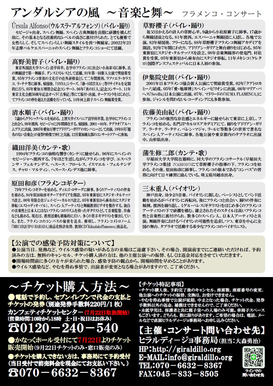 バイレ(踊り): Úrsula Alfonso(ウルスラ・アルフォンソ)、草野櫻子、高野美智子、伊集院史朗、清水順子、佐藤美由紀、岡本かよ子、佐々木裕子、小原茜草、渡邉英奈