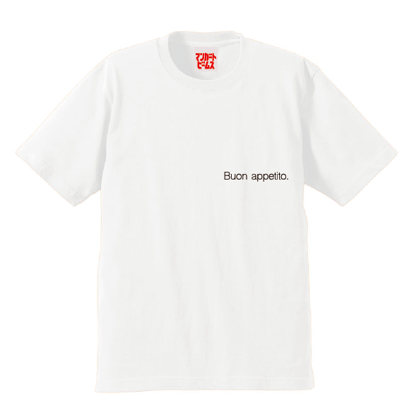 TシャツはビッグT仕様のボディに両面デザインされたもので、フロントにはシンプルに“bon appetit(召し上がれ)”とタイポグラフをレイアウト。