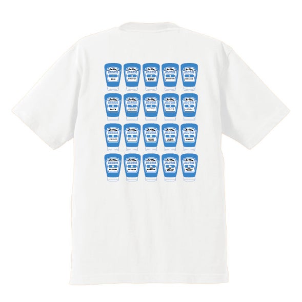 背面にはライブで披露された楽曲ひとつひとつをパスタソースに見立てたコンテンポラリーアート風のデザインが描かれている。普段使いからライブの参戦服まで、幅広く着こなせるアイテムとなっている。