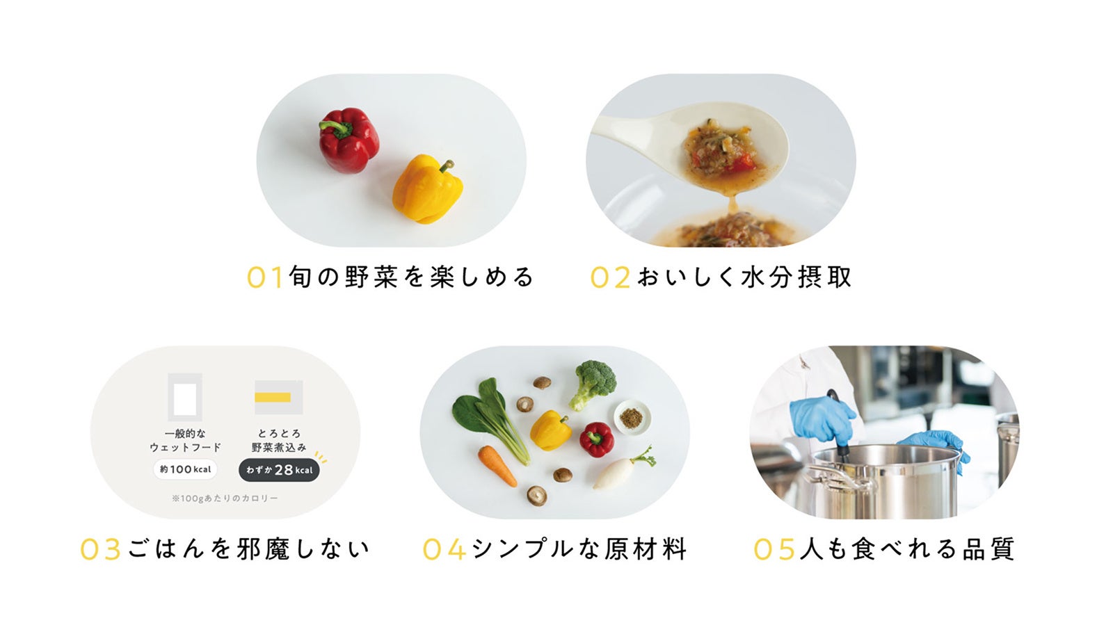 その一方で、お客様からは「もっと食いつきが良くなる工夫が欲しい」「低カロリーで安心してトッピングできるものがあると嬉しい」といった声も多く届いていました。特に夏場は、水分補給や食欲低下への不安が高まる時期です。