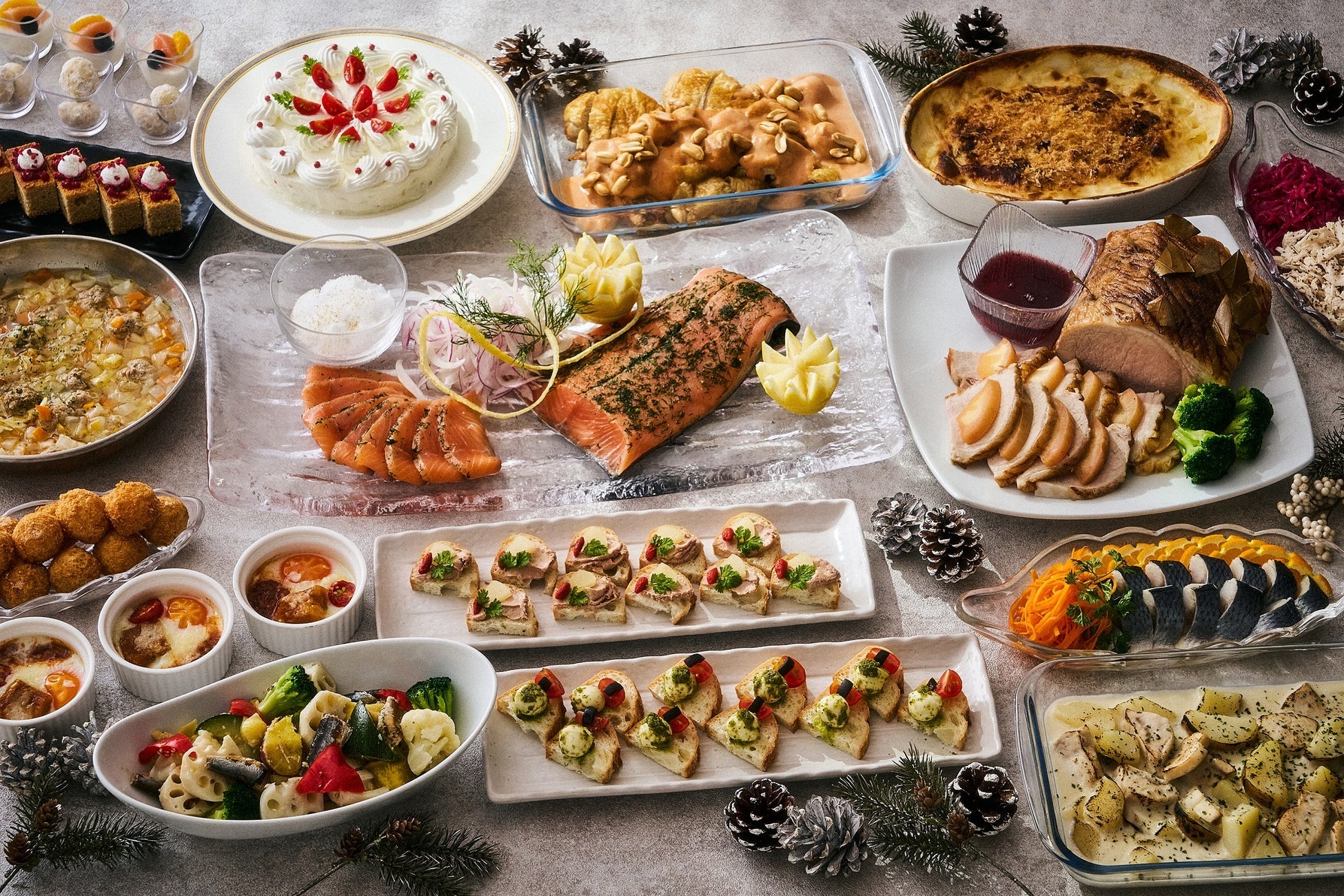 また、2024年12月23日(月)~12月25日(水)の期間は、「クリスマスディナーブッフェ ~北欧サンタからの贈り物~」を実施し、上記北欧メニューに加え、「牛フィレ肉のウエリントン ペリグーソース」、「チキン腿肉のコンフィ」「ビーフシチュー パルマンティエ風」などクリスマス気分を盛りあげるメニューが並びます。