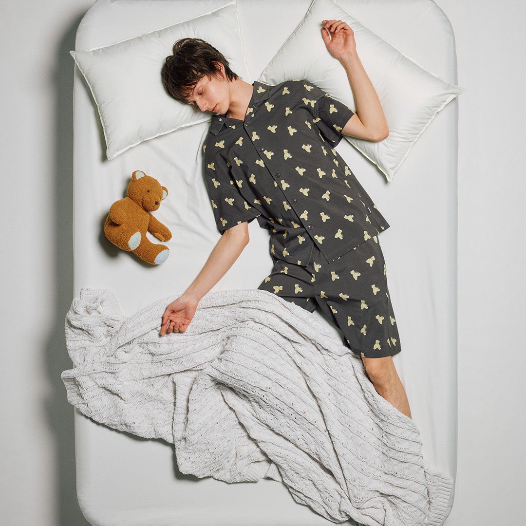 HOMMEオリジナルのピケベア柄をシックな色でまとめた、GELATO PIQUE HOMMEらしいパジャマシャツ&ハーフパンツ。ストレッチの効いた接触冷感の柔らかなカットソーを使用しているので、着心地の良さは折り紙付きです。