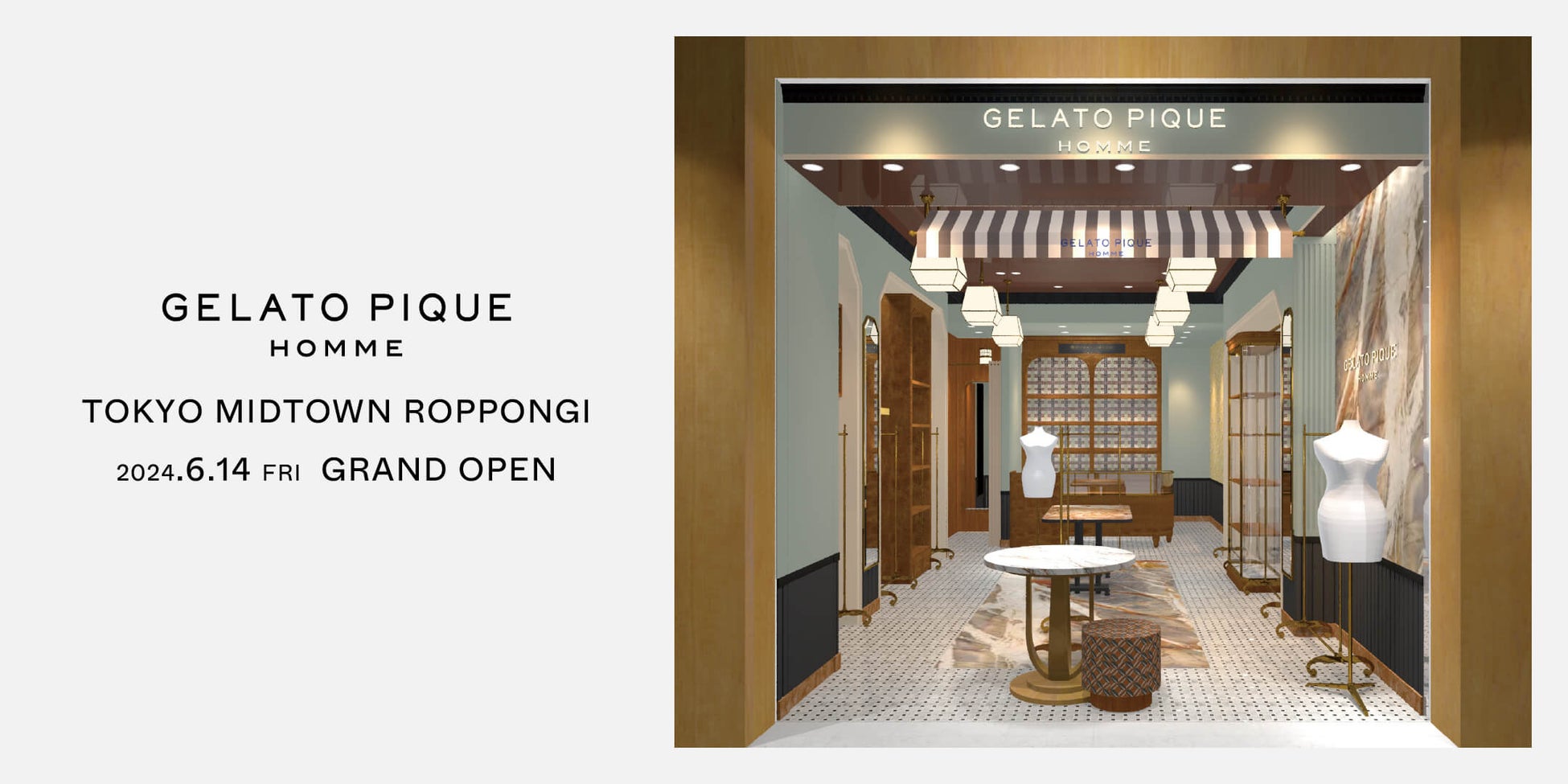 株式会社マッシュスタイルラボ(本社:東京都千代田区麹町/代表取締役社長:近藤広幸)が運営するルームウェアブランド「GELATO PIQUE HOMME(ジェラート ピケ オム)」は、東京ミッドタウン(〒107-0052 東京都港区赤坂九丁目7番4号)に、3号店となる単独店舗を2024年6月14日(金)にオープンいたします。