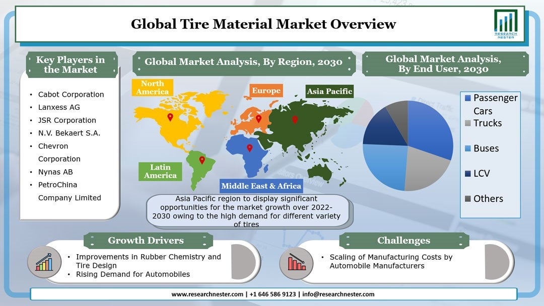 Research Nester Private Limitedは調査レポート「タイヤ材料市場:世界的な需要の分析及び機会展望2030年」2021年12月 07日に発刊しました。これは、予測期間中に、市場の詳細な分析とともに、業界の詳細な洞察を提供します。レポートは、市場規模と決定に基づいてさまざまなパラメーターについて説明します。これらには、市場価値、年間成長、セグメント、成長ドライバーと課題、および市場における主要企業などが含まれます。