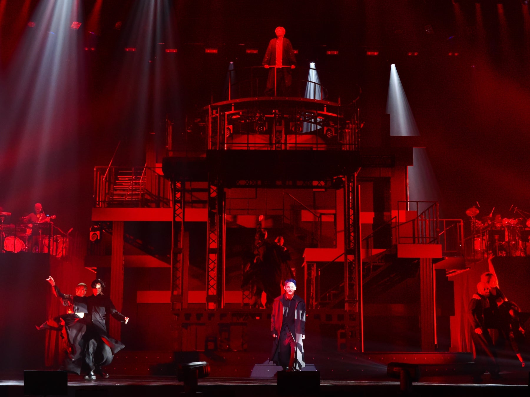 もちろん城田優も負けてはいない。あの名作ミュージカルの女性が歌う名曲を切なく愛らしく歌い、こんな声も出せるんだ!と目からウロコ。このショーのユニークなところは、何らかのストーリーが通底しているようで、大村俊介[SHUN]が踊る、とあるパートは原曲の軽やかなトーンとは真逆のダークな世界観で驚き、打ちのめされた。過去の歴史か、もしくは今か。ここは観る人によって解釈が分かれそうだが、そこから『エリザベート』の「闇が広がる」につながり、そう来るか!である。