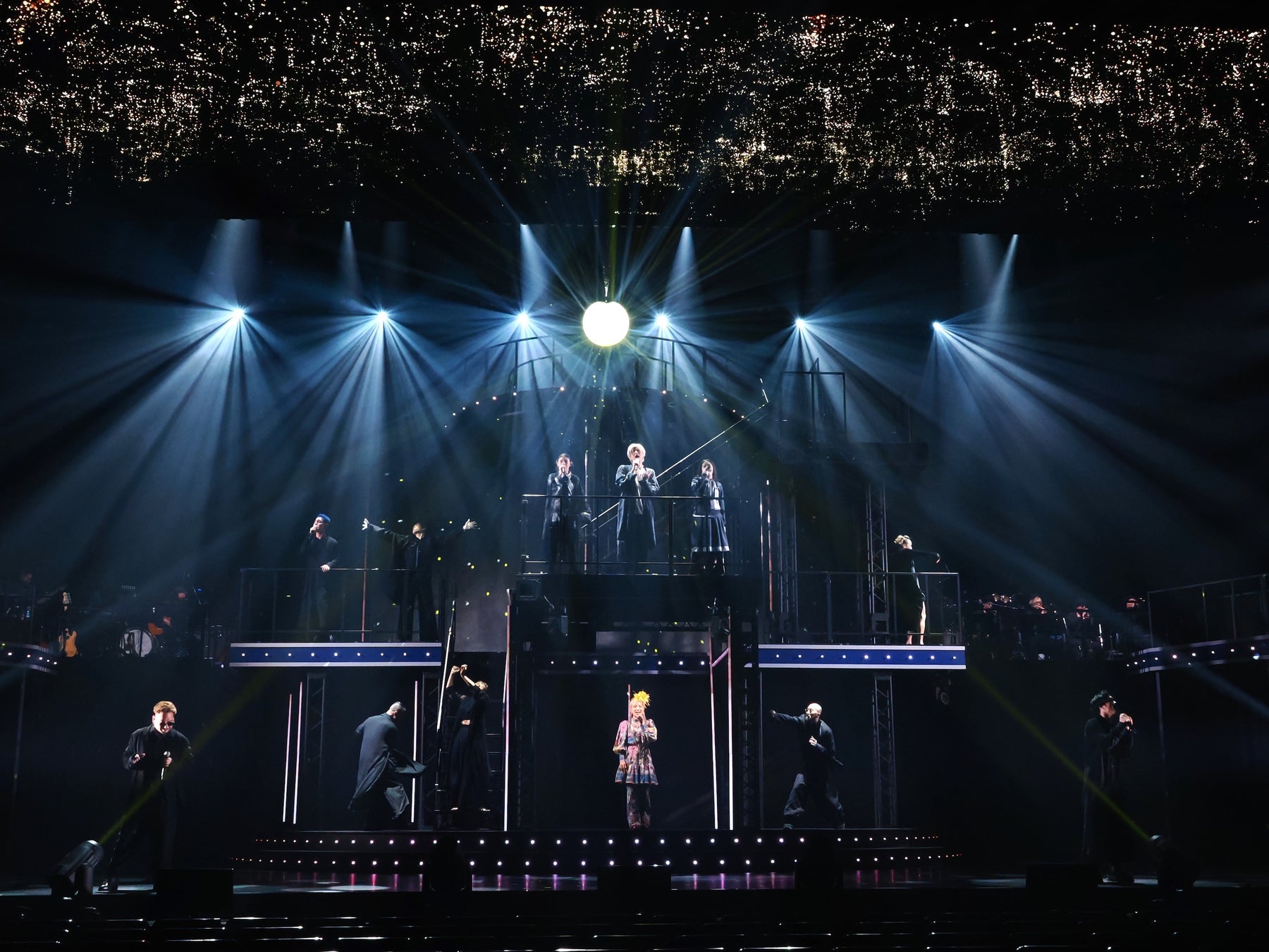 シンプルなピアノの音から始まり、渋谷のスクランブル交差点、そして渋谷を歩きながら透明なガラス球を街のあちこちに置く城田の姿が映像で映し出され、球は城田の眼へと昇華する。これは一体何を意味するのだろう?と考えるうちに、キャスト全員による『RENT』の「Seasons of Love」がしっとりと始まった。美しいハーモニーとダンサーの身体表現に震えていると、渋谷のあちこちを楽しそうに走り回るRainy。15歳とyuzu14歳の映像が!この曲をこうアレンジ!?そうきたか!とテンションが一気に上がった。未来への希望を高らかに歌う二人、可愛くてフレッシュで、何より歌も上手いしエネルギッシュ。すごい才能が現れた!とすっかり二人の虜になってしまった。ダンサーのソロでは原田薫、大村俊介[SHUN]、碓井菜央の舞台好きならお馴染みのダンス界を牽引するベテラン勢から、SNSでバズり中のストリート系BOXER、情感溢れるダンスが見事な新星・高村月がガッツリ魅せる。次の「Dreamgirls Medley」ではSWEEP、RIOSKE(ペルピンズ)、吉田広大の声量合戦(!?)に、驚くやら感動するやら。男性がこのナンバーを歌うのも面白いし、素晴らしい歌声が劇場を満たす、そこに浸れて多幸感MAXだ。