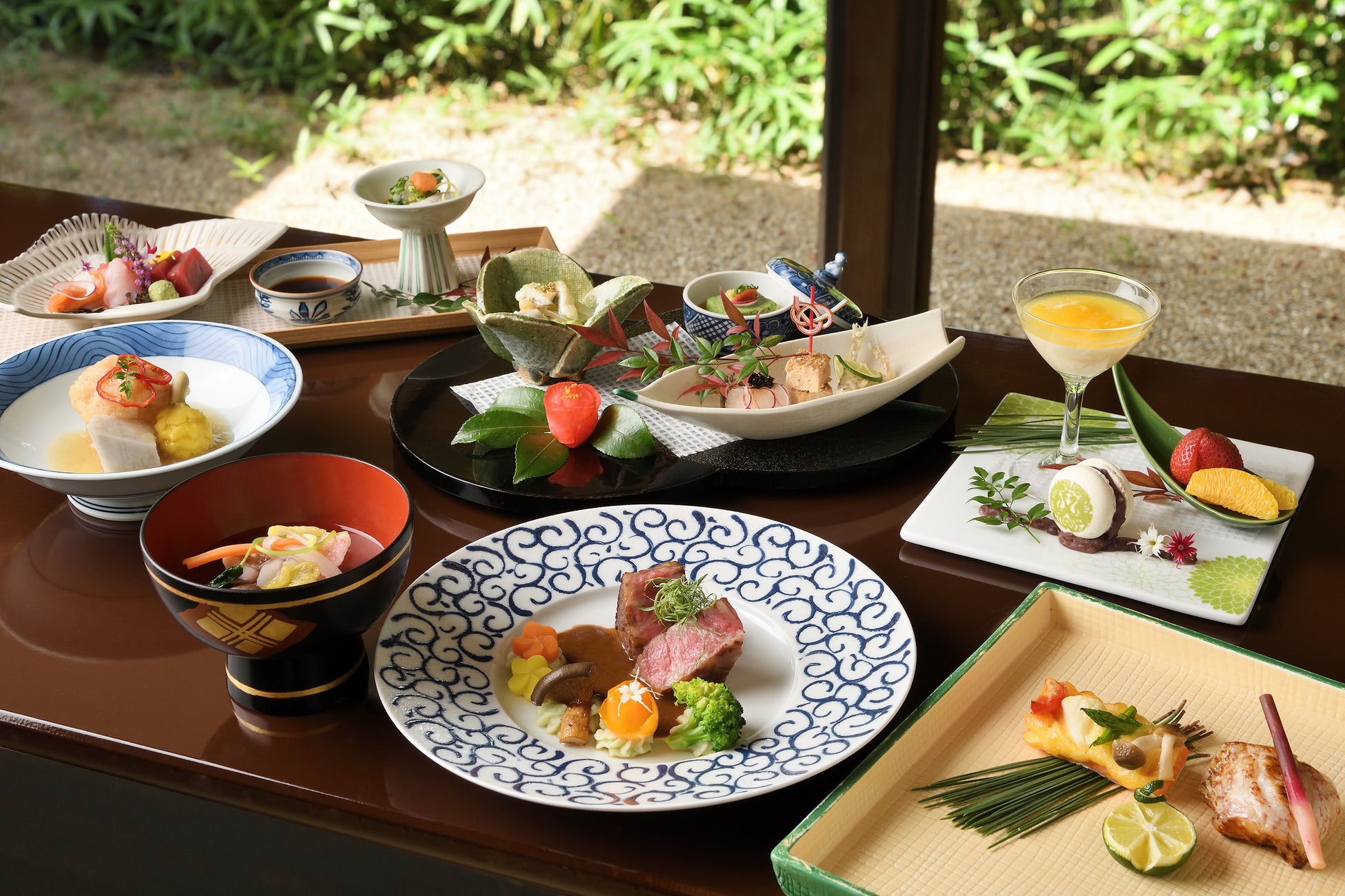 旧三菱財閥の創始者・岩崎弥太郎氏の長男・久彌氏の別邸として、壮大な日本庭園の中に建てられました。歴史と格式ある数寄屋造りの本館は、貴重な国民的財産として有形文化財に登録されています。また新館は文化勲章受章者で建築家村野藤吾氏の設計によるものです。 四季の移ろいが美しい庭園は、およそ3,000坪。近代日本庭園の先駆者である京都の庭師・小川治兵衛氏の手による壮大な日本庭園が広がります。本プランでは、日本の伝統工芸技法「截金(きりかね)」細工の重要無形文化財保持者(人間国宝)として活躍した江里佐代子氏の作品「峰光」が飾られた三養荘の大広間「雄峰」の舞台で、一夜限りの文楽公演を行います。