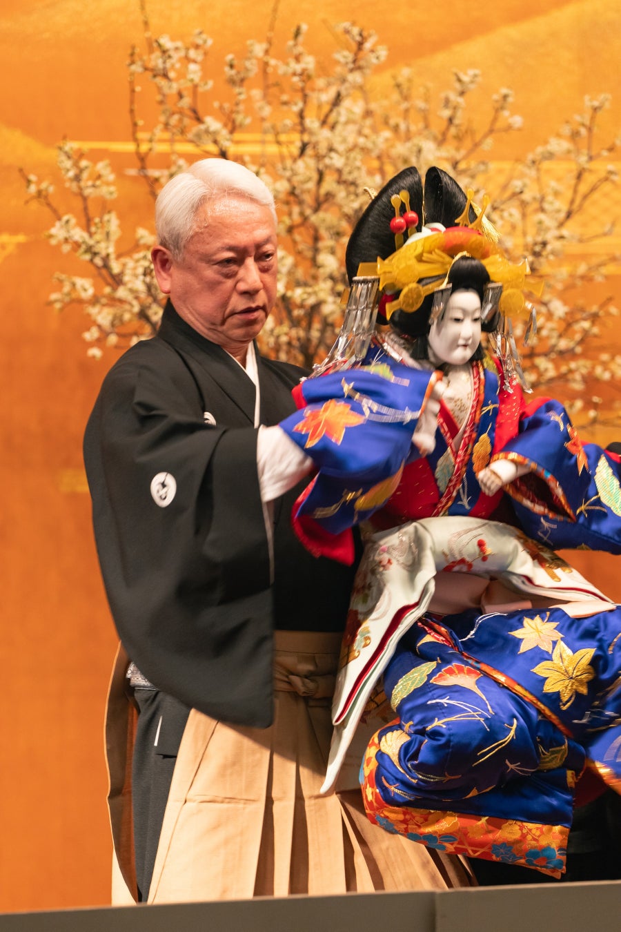 2024年2月、三養荘で初めて開催し好評を博した「春爛漫プレミアム文楽」。人間国宝で截金作家の江里佐代子氏の作品『峰光』によって彩られた舞台上で、プロデューサーを務めた人形遣いの吉田勘彌氏をはじめ、豊竹呂勢太夫氏や鶴澤燕三氏ら総勢12名の出演者が『ひらかな盛衰記』より「神崎揚屋の段」を演じました。また、上演後には人形遣いや三味線の技芸員による実演解説を実施し、「文楽の世界」をごゆっくりお楽しみいただきました。あれから一年、上記出演者が三養荘に再集結し、新たな演目『妹背山女庭訓』より「金殿の段」を上演いたします。観劇後には、伊豆の新鮮な旬の食材を使用した懐石料理と、春が色づく壮大な日本庭園、温泉と、風情溢れる空間をご堪能いただけます。その土地のストーリー、その季節ならではの景色と時間が提供する特別な空間を味わってみてはいかがでしょうか。「文楽」の見方や演目の見どころをわかりやすく解説するワークショップ付きで“文楽デビュー”にもおすすめいたします。