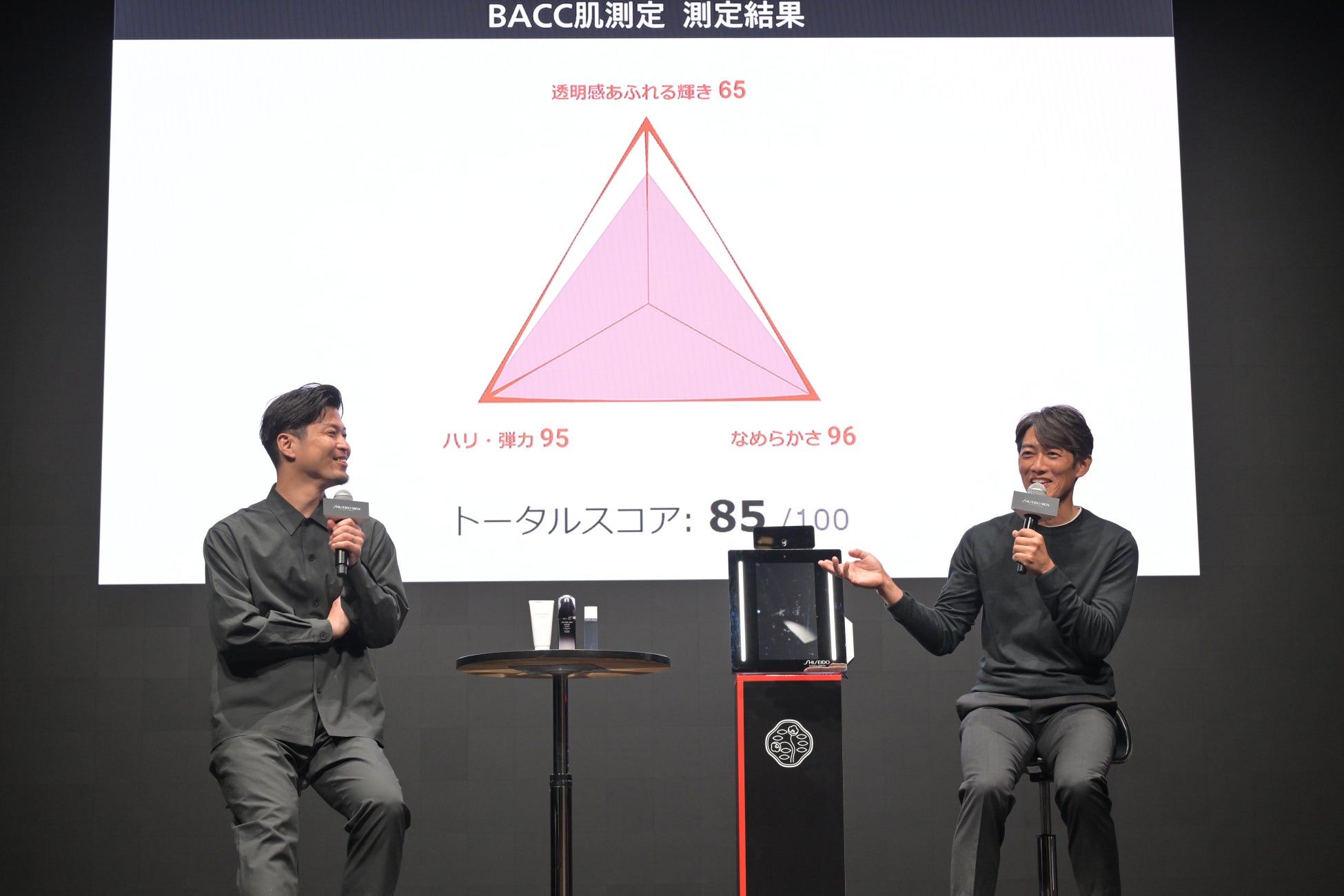 会場では20~40代の男性参加者にも「BACC」を使った肌測定と美容カウンセリングを受けてもらいました。反町さんは参加者の様子を見ながら「みなさん、貴重な体験だと思いますよ」とコメントしました。会場の参加者も「普段からスキンケアはやっていますが、このように点数が出ると普段のスキンケアを見直すいい機会となりました」「反町さんのようなGREATな肌を目指します」と、初めて知る自分の肌状態に対して感心した様子でした。