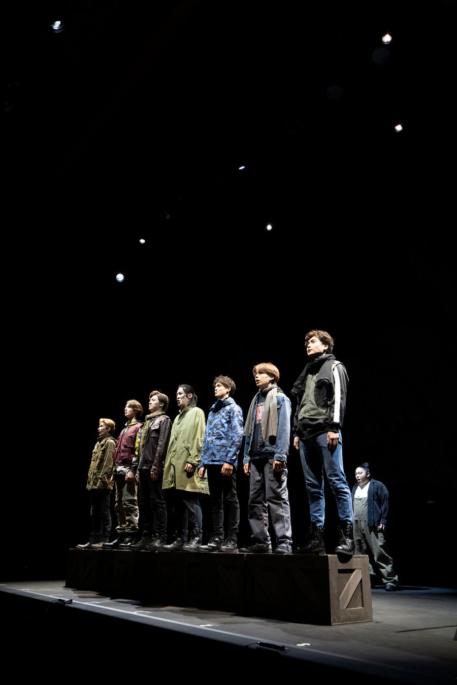 囲み取材で荒井は「年齢層もそうですし、初舞台から大先輩まで(キャリアも)幅広いキャストで稽古してきました。あとは自分たちを信じて、スズカツ(鈴木)さんの演出でできあがったこの世界観を全力でがんばるだけです」、嘉島は「客席に近いところでのお芝居もあるので、お客様の反応も楽しみにがんばりたいです」、駒田は「荒井くんも言ったようにいろんな人たちが集まって、スズカツさんを筆頭にいろんなことを試しながら、苦労しながら、悩みながらやれたと思います。早く幕を開けて、お客様の感じを知りたいです」、ドラムは「初めての舞台で、僕が喋っているところを初めて観る方もいると思います。これからの役者人生をかけて本気で向かっていきたいです」、田中は「一か月間稽古してきたことを信じて、お客様にぶつけるだけです」、飯原は「絶対全公演ミスなしで演じきるので、お客さんは安心して来てください……!」、瀬谷は「アドリブもけっこうあるので、そこも楽しんでいただければ」、翔は「初舞台なので楽しめたら」、大友は「みんなで話し合ってどうしていくか決めることもありました。細かいところまでこだわっているので、そこもぜひお客様に感じ取っていただけたら」と話した。