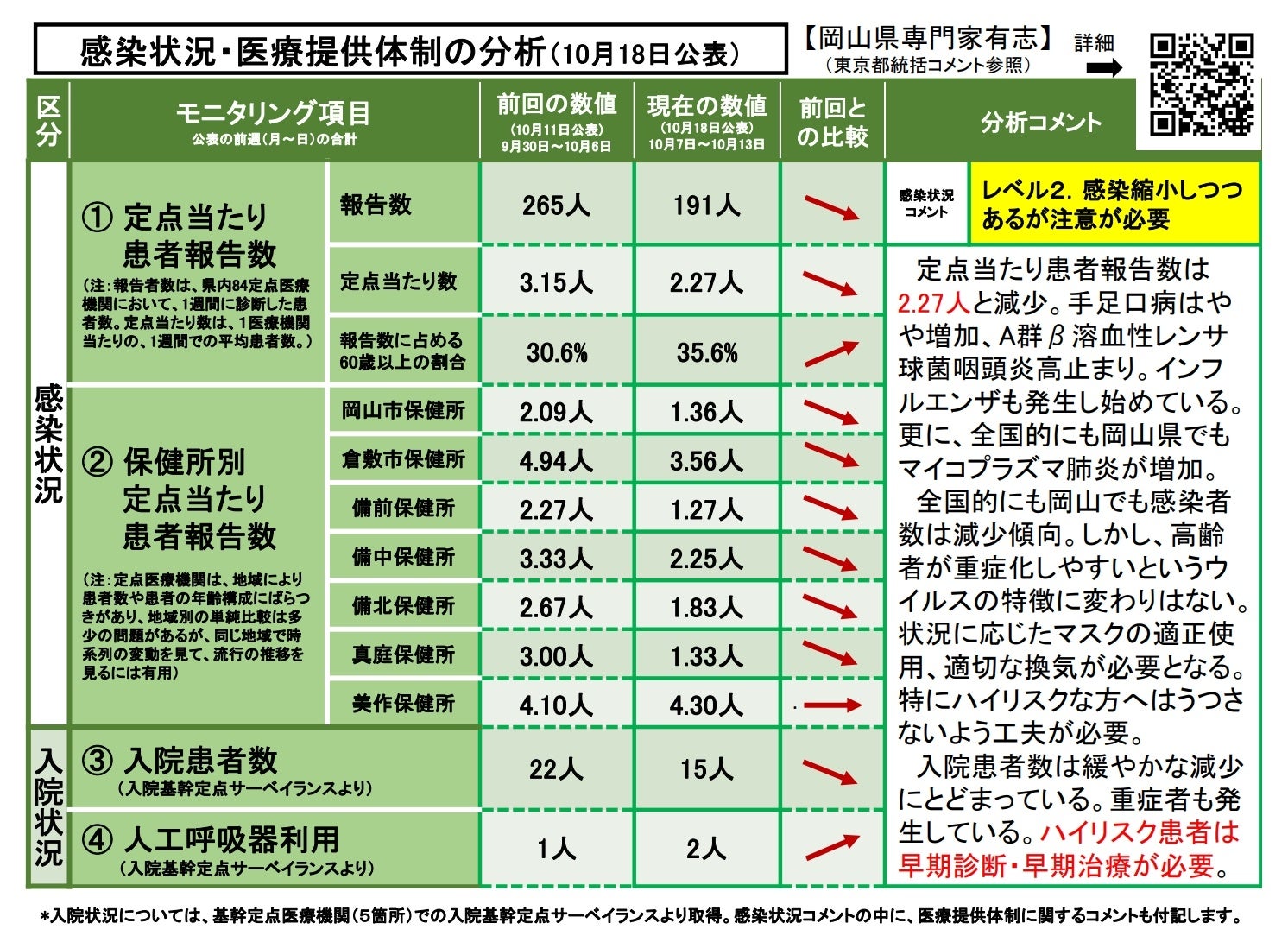 【岡山大学】岡山県内の感染状況・医療提供体制の分析について(2024年10月18日現在)