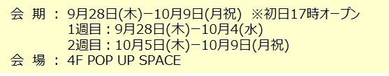 会 期 : 9月28日(木)ー10月9日(月祝) ※初日、17時のオープン