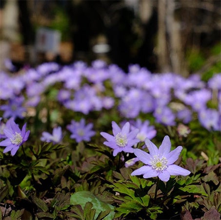 園内では樹林区のあちこちで群落が見頃を迎え、今シーズンより開通した新規園路はキクザキイチゲ群落の南側に位置し、正面から群落を楽しんでいただけます。