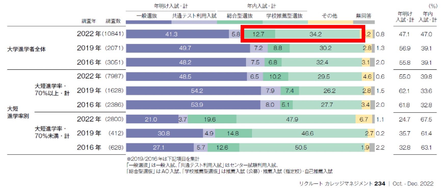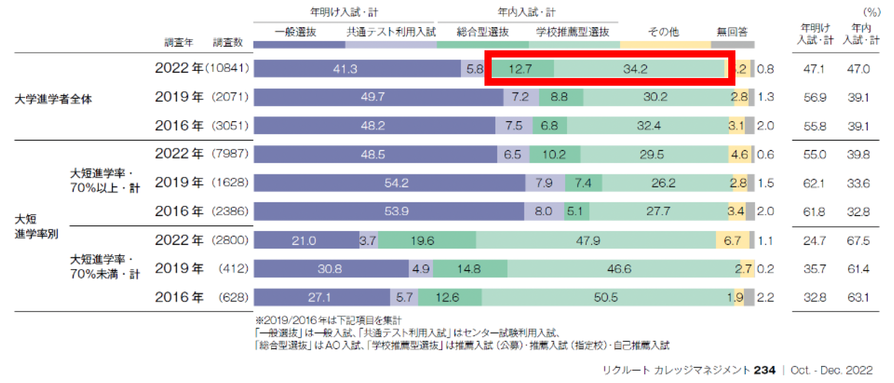 ▼進学する学校に入学した方法(リクルート進学センサス2022)