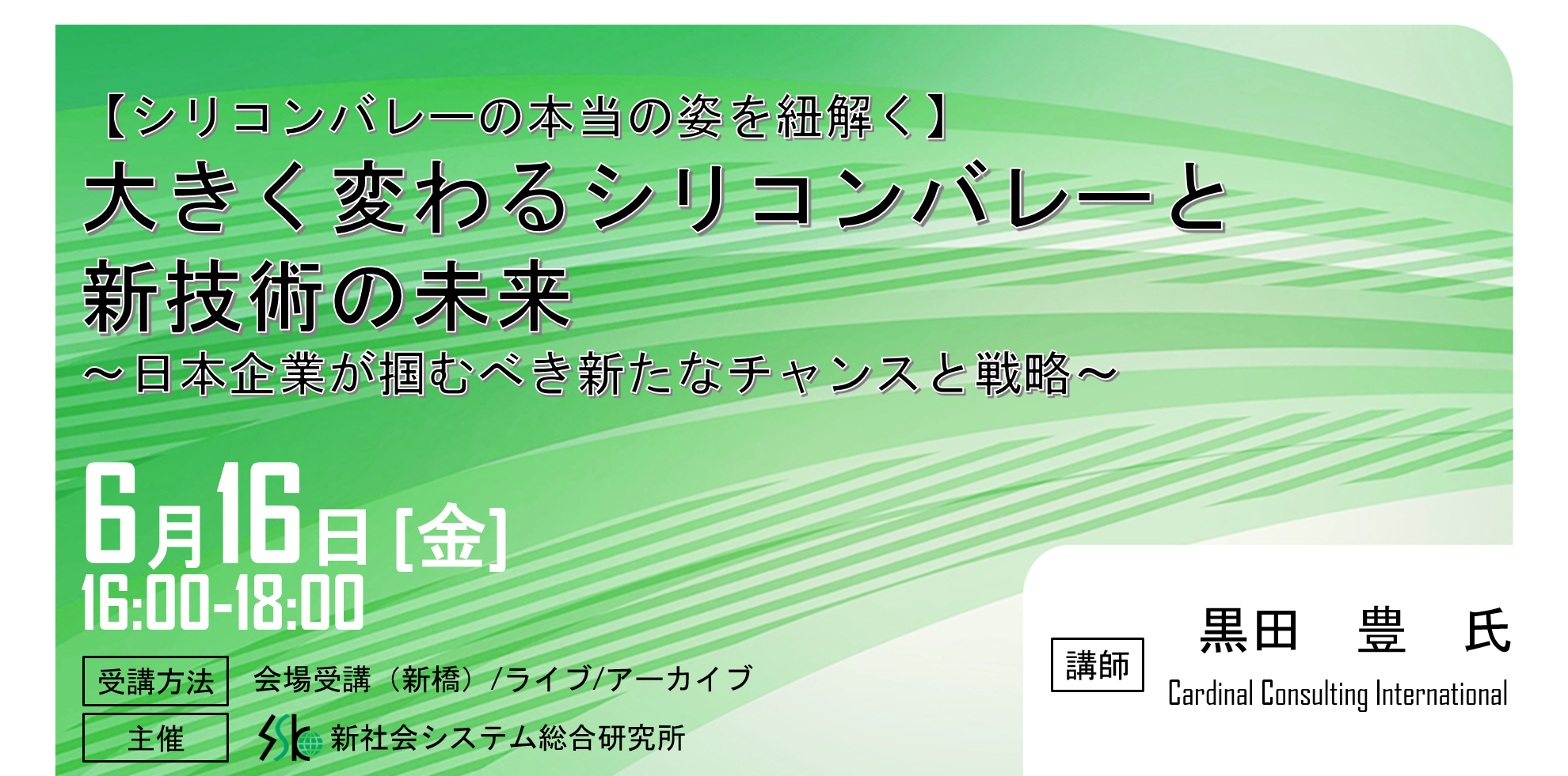 「大きく変わるシリコンバレーと新技術の未来」と題して、Cardinal Consulting International 黒田 豊氏によるセミナーを2023年6月16日(金)に開催!!