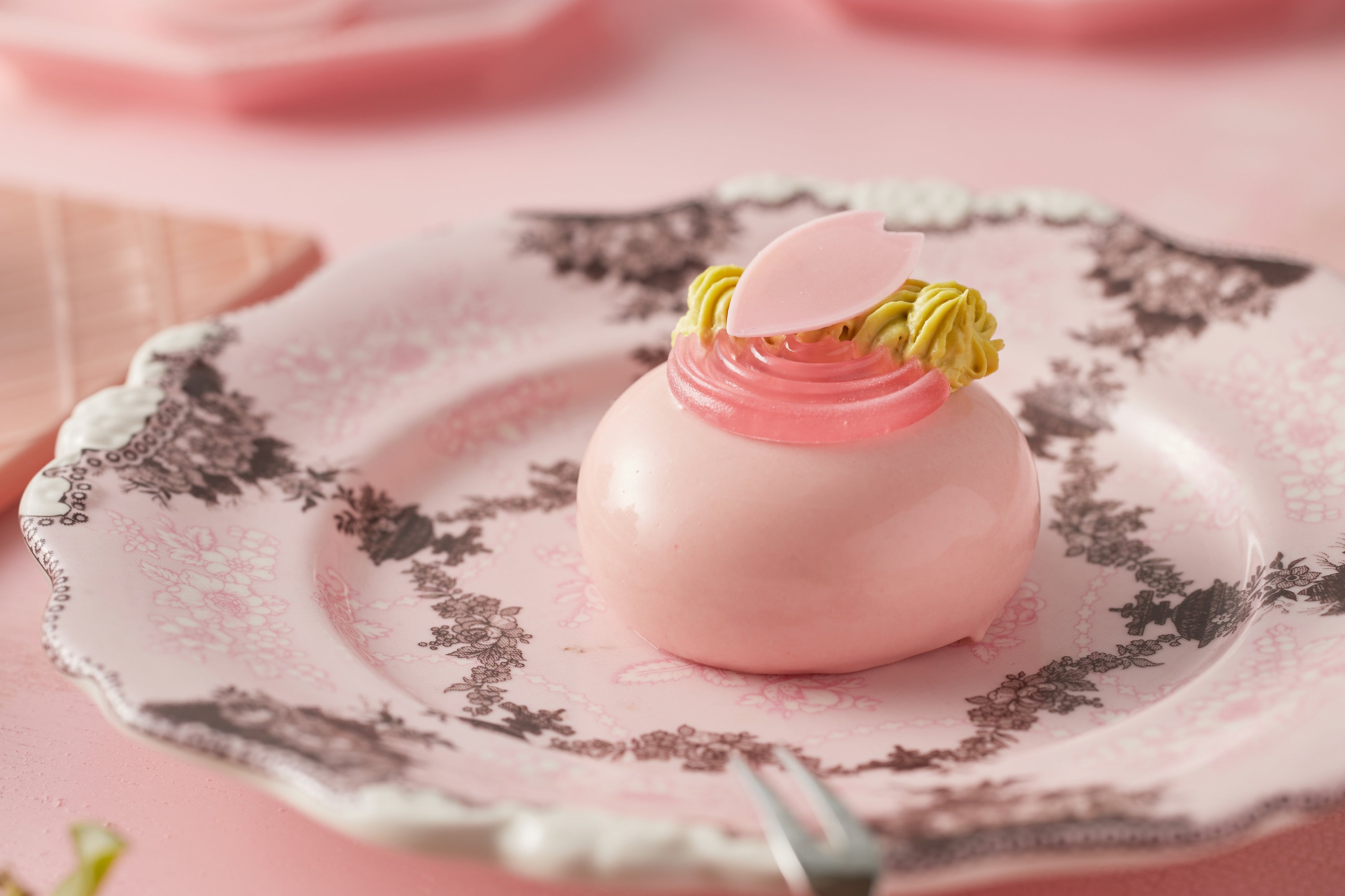 ほんのり甘い桜とホワイトチョコレートのムースの中に、抹茶ガナッシュ・求肥・桜餡を包みました。桜のピンクと抹茶の緑のコントラストが美しい、和スイーツをお楽しみいただけます。