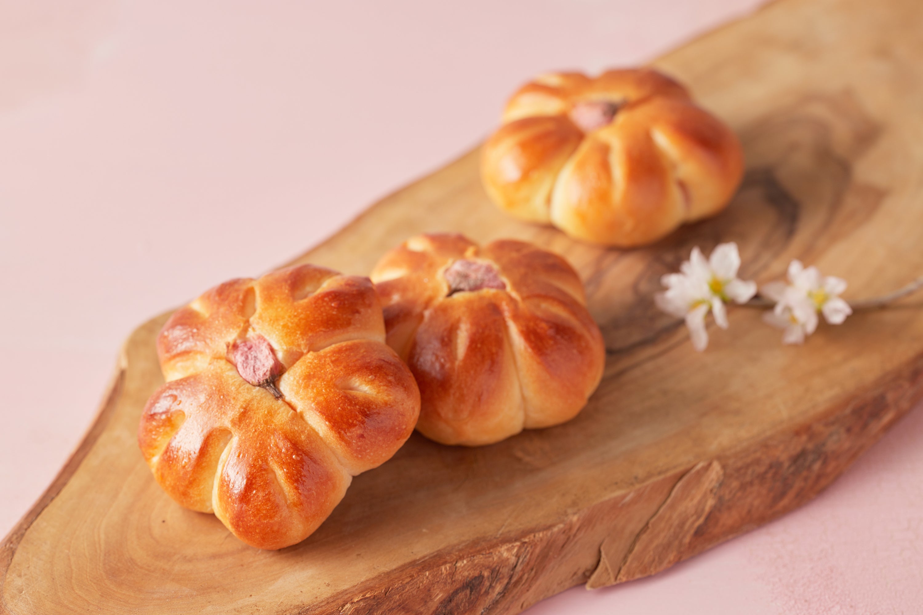 また「桜あんぱん」は塩気のある甘い桜餡を折り込み、桜の花びらの形に仕立てました。中央に飾った桜の塩漬けが心地よい和の香りをお届けします。