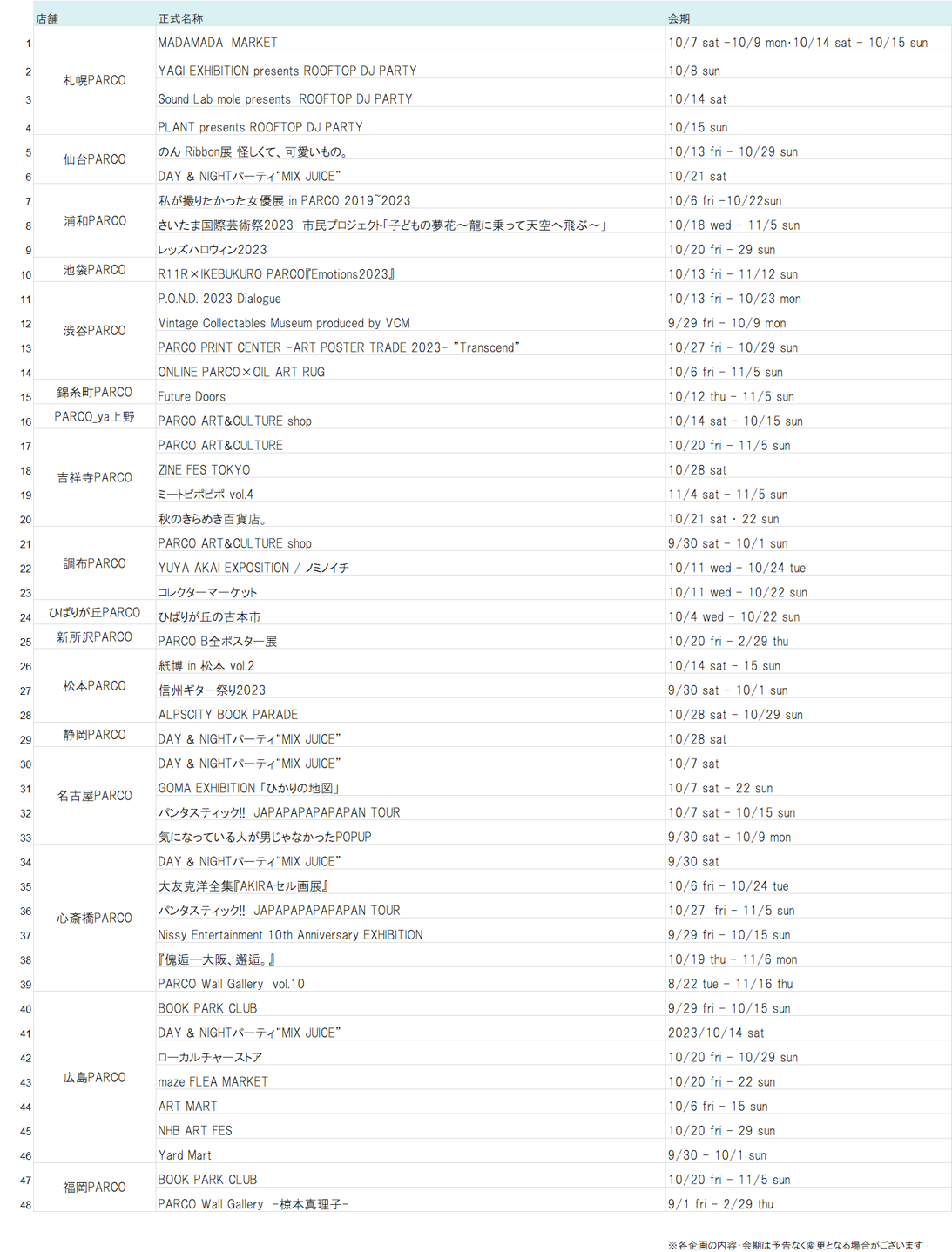 HP : https://parco.jp/art-culture