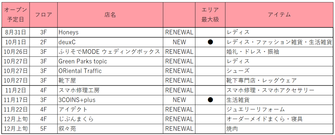 3F 8/31(木) RENEWAL OPEN