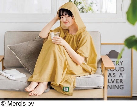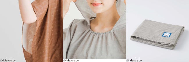 肌ざわりのいいダブルガーゼの着るバスタオルです。とりあえずタオルを身にまといたいときや、汗が気になるお風呂上がりにさっと着られます。試作品モニターやヒアリングから袖ぐりや首もとを工夫。広めのアームホールに、フードの首もとはゴム入りで誰でもすぽんと着脱しやすいデザインに仕上がりました。すっぽり包むフード付きなので、ぬれた髪もふきやすくなっています。使うほどにやわらかくなじんでいく素材感で、軽くてかさばりません。