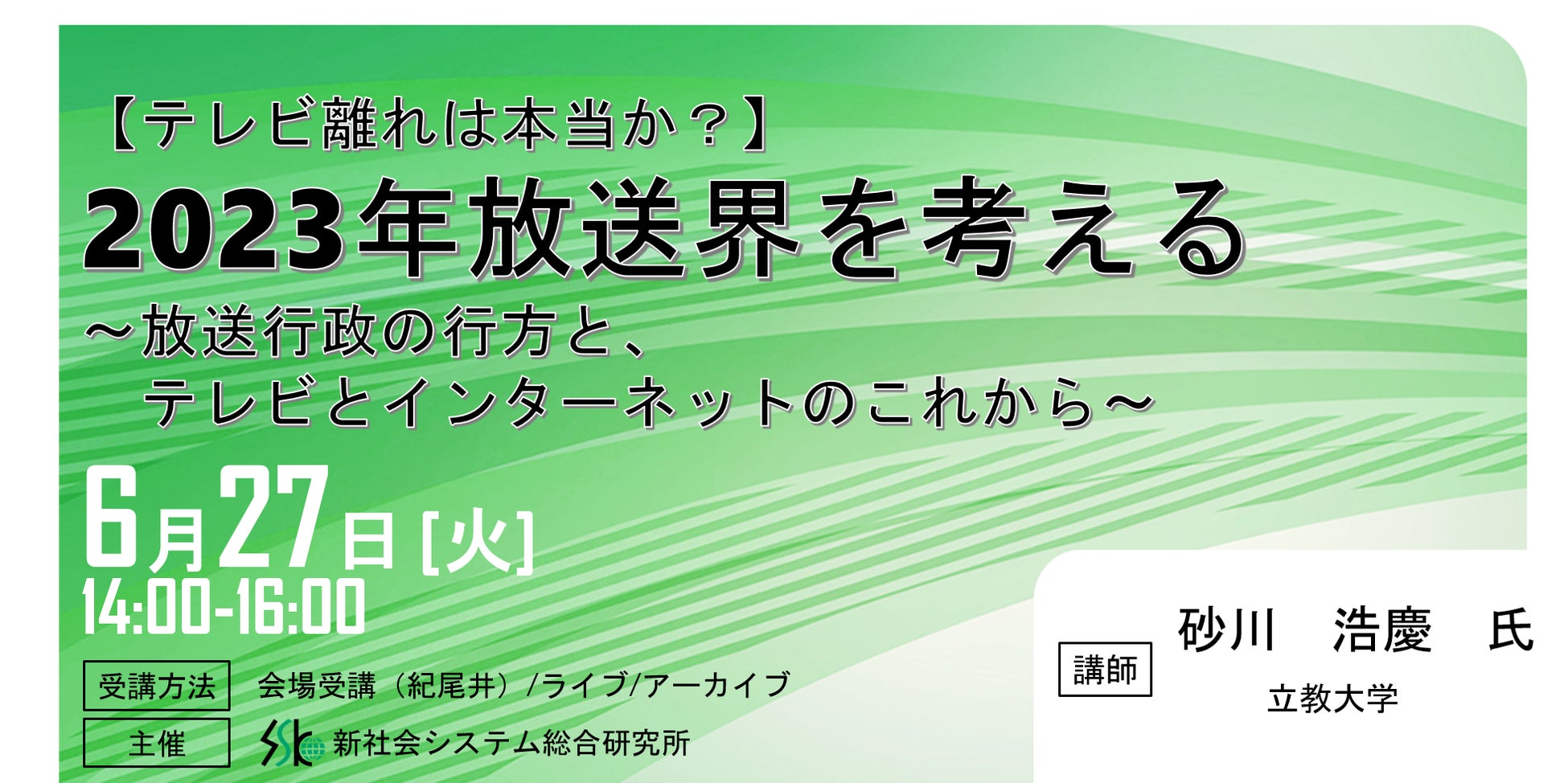 「2023年放送界を考える」と題して、立教大学 社会学部長・教授 砂川 浩慶氏によるセミナーを2023年6月27日(火)に開催!!