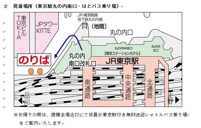 東京都は、自衛隊東京大規模接種会場の接種開始にあわせて、接種される方の利便性を図るため、東京駅発着の無料送迎シャトルバスを運行することとしましたのでお知らせします。