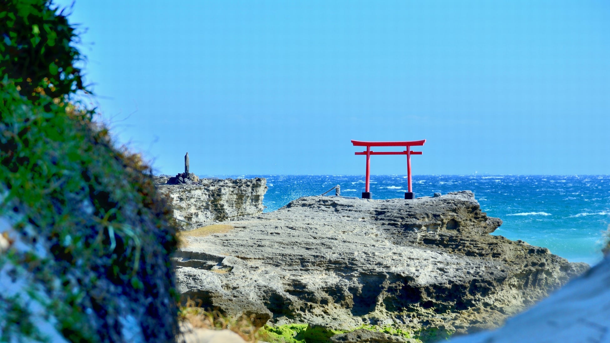 ホテルの隣には、伊豆最古の宮「伊古奈比咩命神社」通称「白濱神社」があり、伊豆のパワースポットとして人気があります。一歩中に入ると、樹齢2,000年といわれる薬師の柏槙(びゃくしん)、白龍の柏槙と巨大なご神木がお出迎えしてくれます。境内奥の白砂のビーチにある「大明神岩の赤鳥居」は、紺碧の海とのコントラストが美しい絶景はもちろん、伊豆七島まで見渡すことができます。