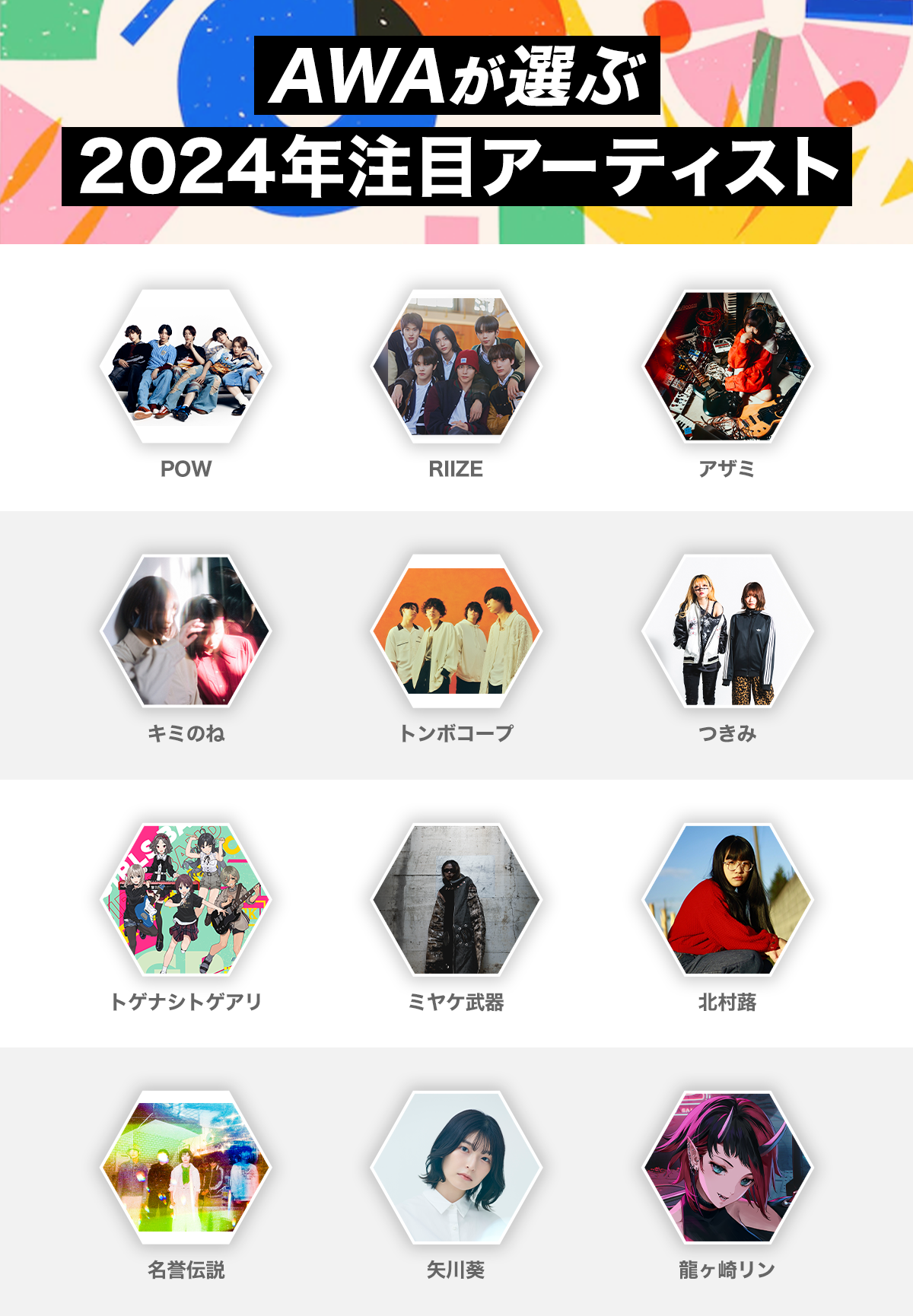 AWA株式会社(本社:東京都港区、代表取締役CEO:冨樫晃己)が運営する、サブスクリプション型(定額制)音楽ストリーミングサービス「AWA(アワ)」は、AWAで活動する有識者とAWAエディターが2024年に注目するアーティストを発表いたしました。また、各有識者、エディターが選考理由を独自の目線で解説したコメントも合わせて公開。
