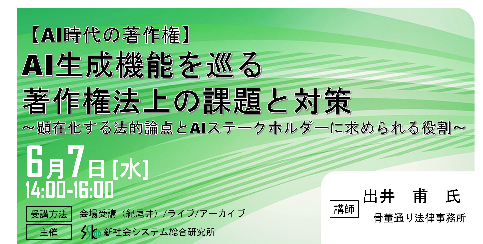 「AI生成機能を巡る著作権法上の課題と対策」と題して、骨董通り法律事務所/内閣府 出井 甫氏によるセミナーを2023年6月7日(水)に開催!!