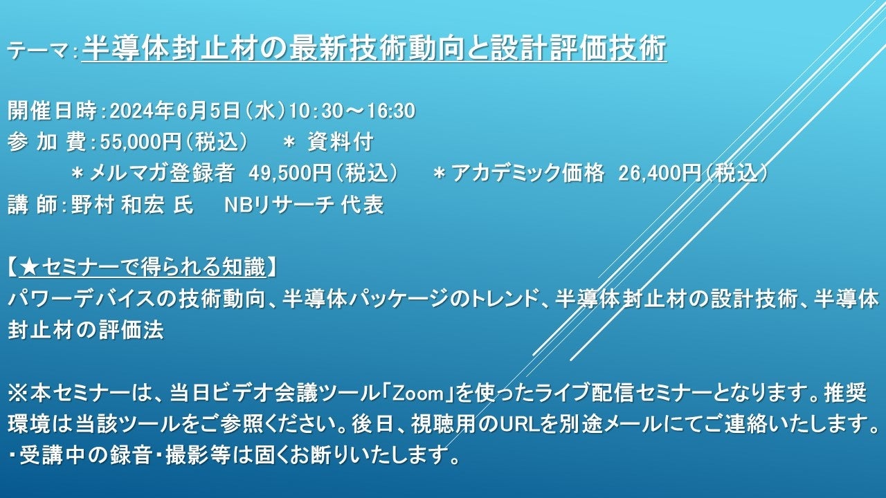 【ライブ配信セミナー】半導体封止材の最新技術動向と設計評価技術 6月5日(水)開催 主催:(株)シーエムシー・リサーチ