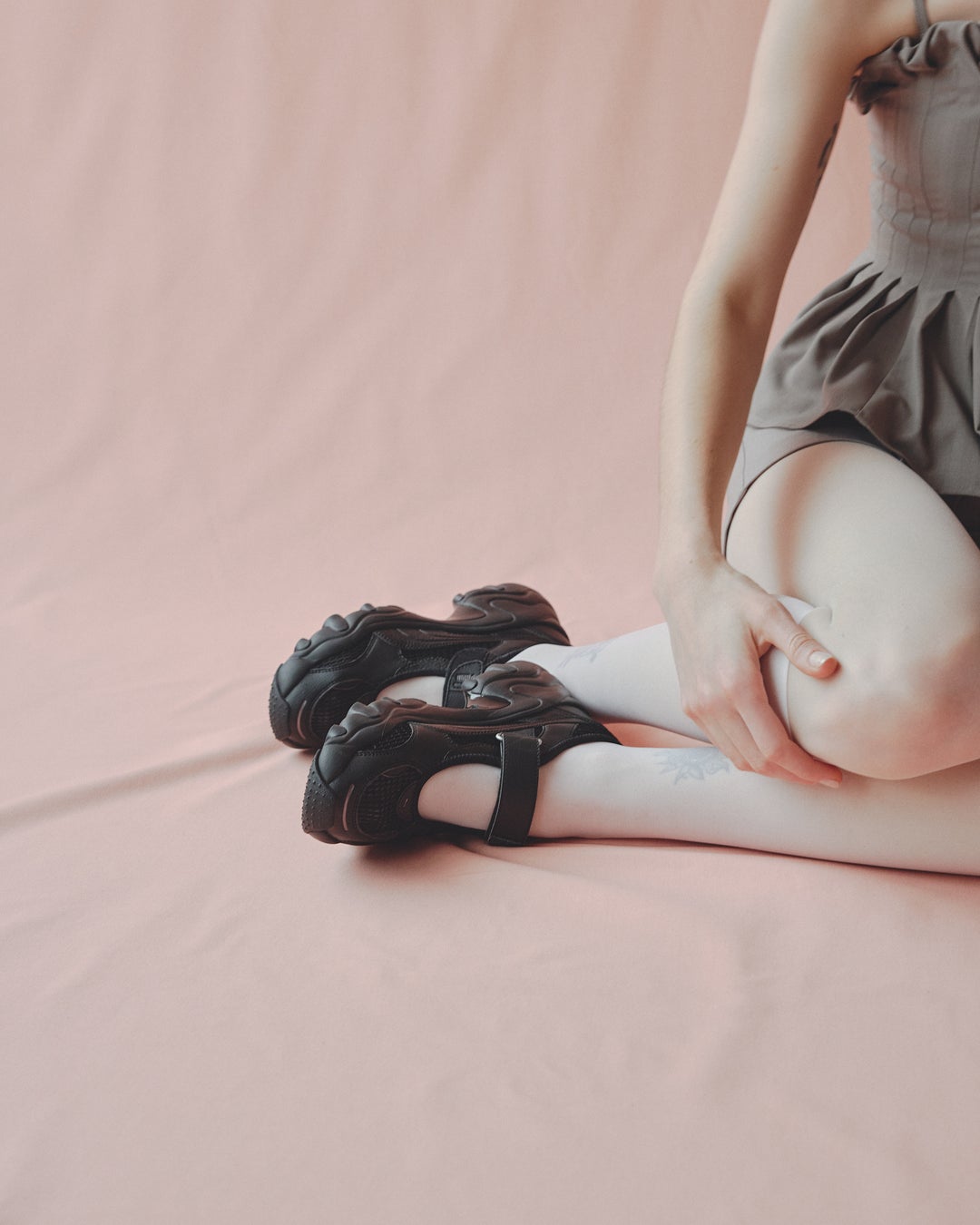 大胆なウェッジソールにはEVA素材を使用しているのでクッション性が高く、見た目以上に軽量で疲れにくく歩きやすいのが特徴。スポーティさと上品さを兼ね備えたここでしか手に入らないスペシャルな1足です。