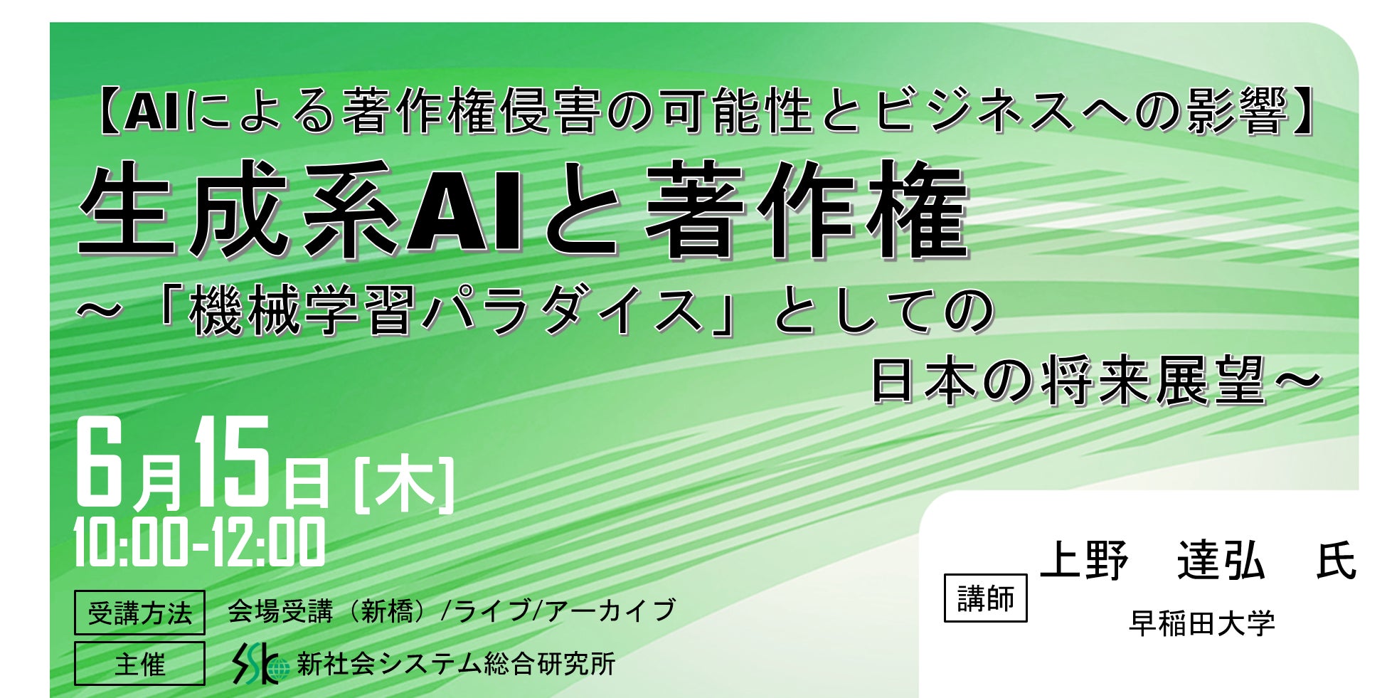 「生成系AIと著作権」と題して、早稲田大学 法学学術院 教授 上野 達弘 氏によるセミナーを2023年6月15日(木)に開催!!