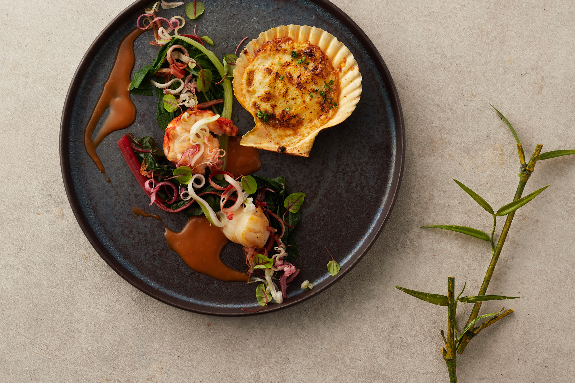 ・ ヒオウギ貝とオマール海老のグリル ナンチュアソース