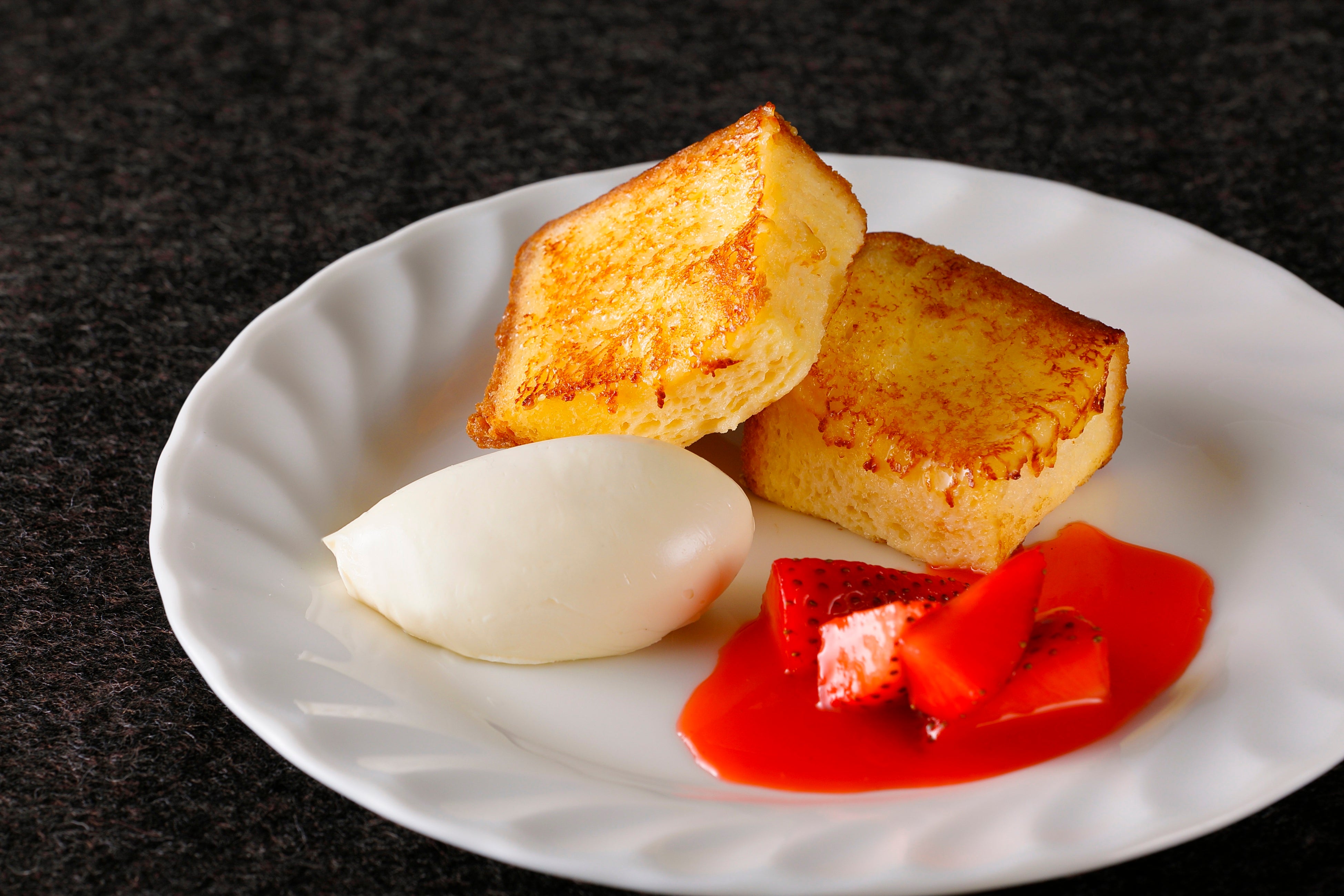 さらに、お客様の目の前でソースをかけて仕上げる「ストロベリーソースのフレンチトースト」が味わえるパフォーマンスコーナーも登場いたします。パティシエ自慢のホットスイーツにもぜひご期待ください。
