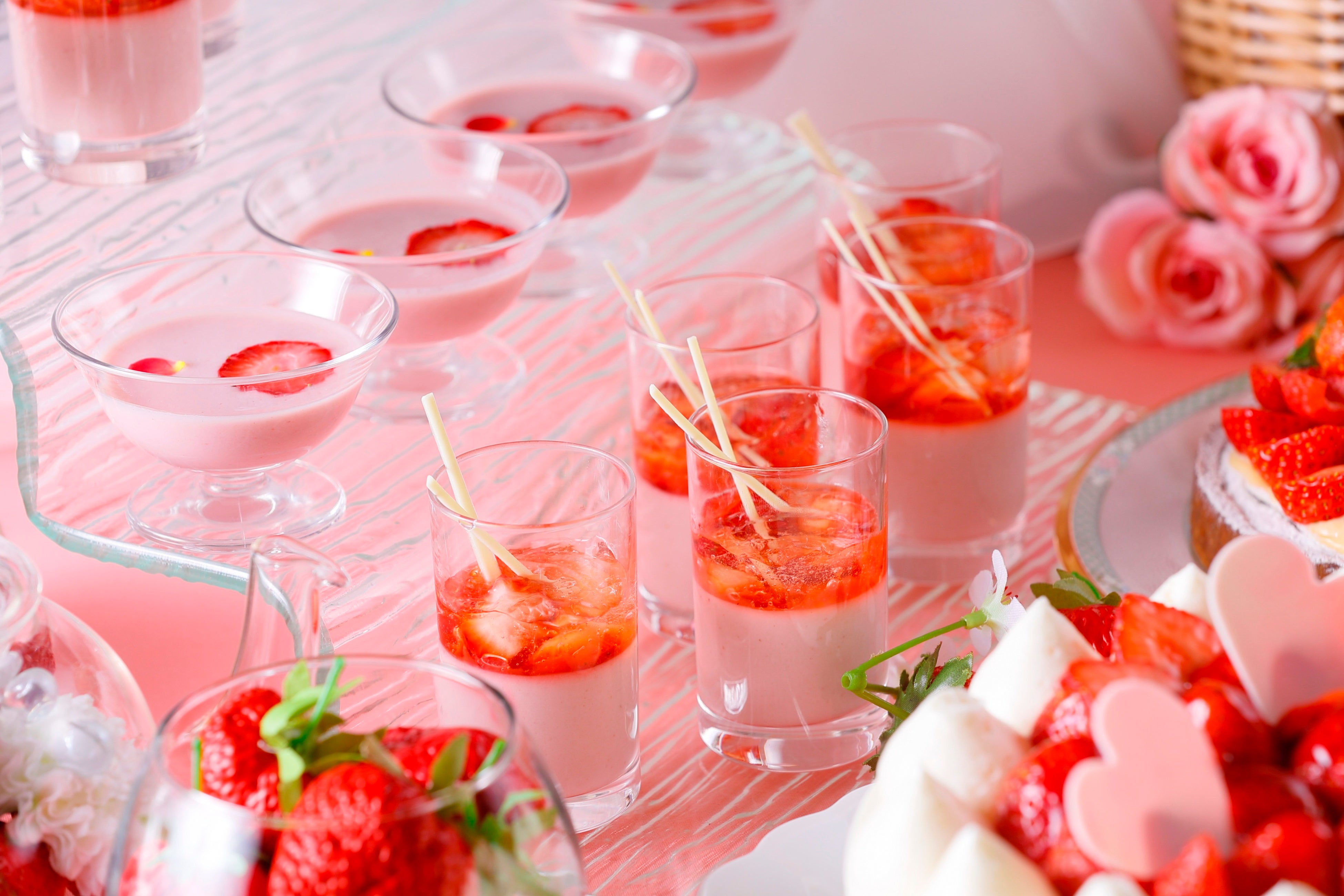 内容:スイーツ各種・軽食(温かいスープ・サンドウィッチ・パスタなど) ノンアルコール苺カクテル・コーヒー・紅茶・ハーブティー・ジュース各種