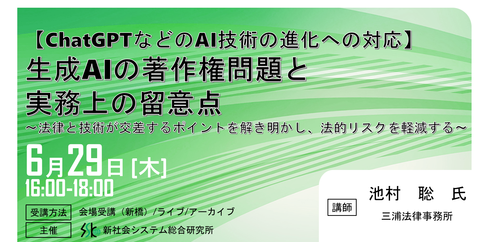 「生成AIの著作権問題と実務上の留意点」と題して、三浦法律事務所 弁護士 池村 聡氏によるセミナーを2023年6月29日(木)に開催!!