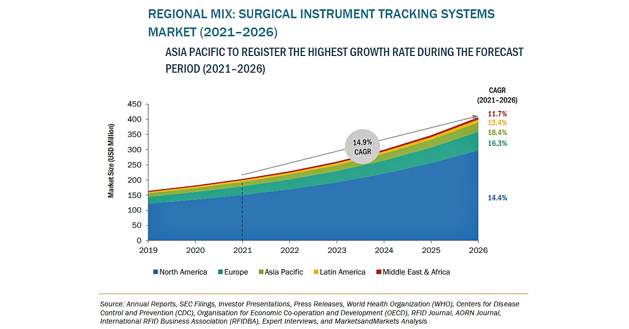 手術器具の追跡システムの市場規模は、2021年の2億300万米ドルからCAGR14.9%で成長し、2026年には4億600万米ドルに達すると予測されています。これは、コスト削減と効率性の向上を目的として、在庫管理や資産管理を確実に行う必要性によるものです。エンドユーザーは、貴重な資産の損失を最小限に抑え、円滑なワークフローを確保することに注力しています。