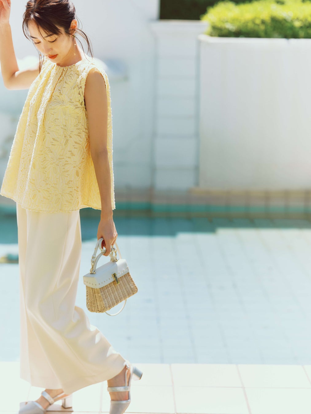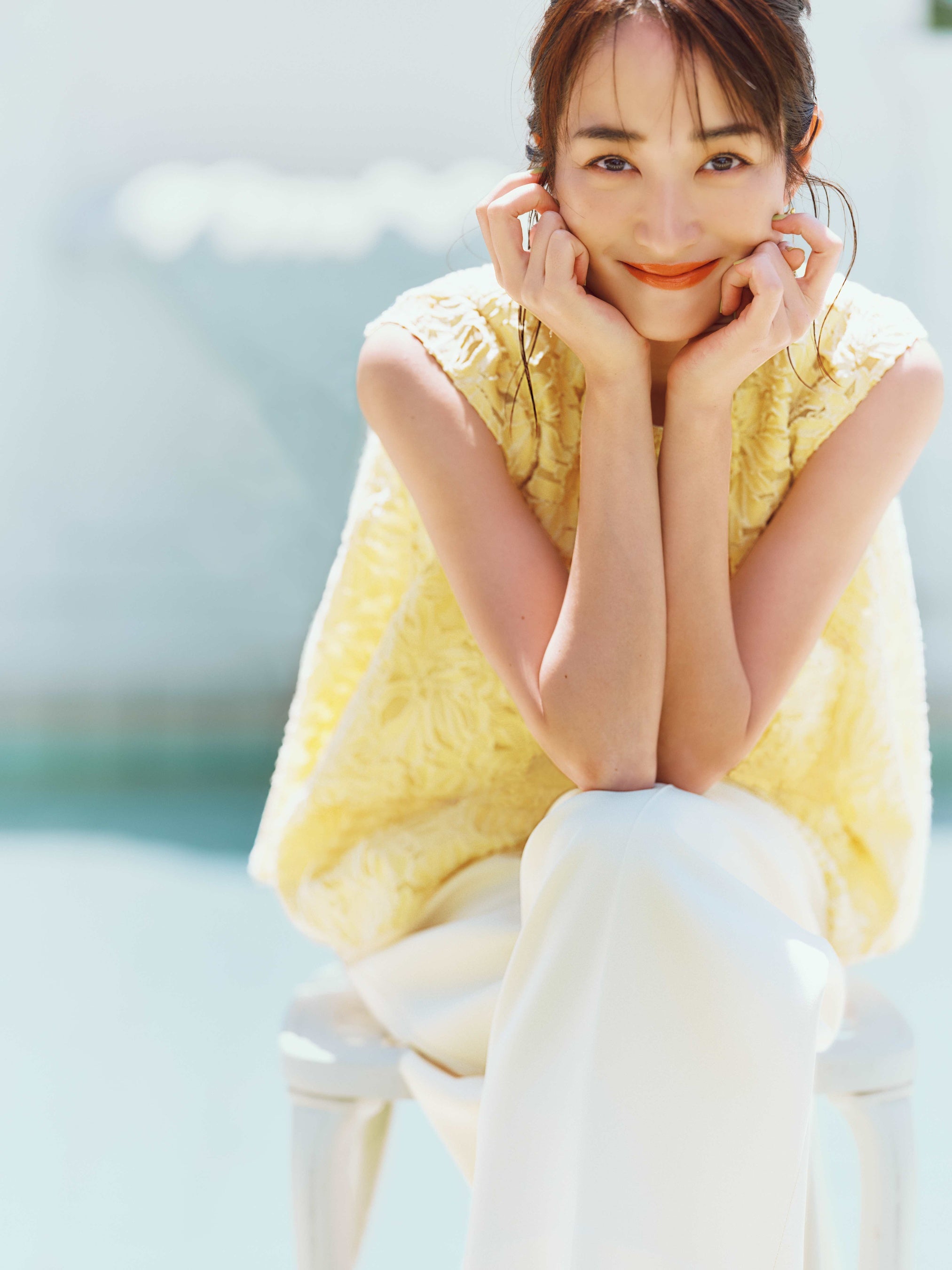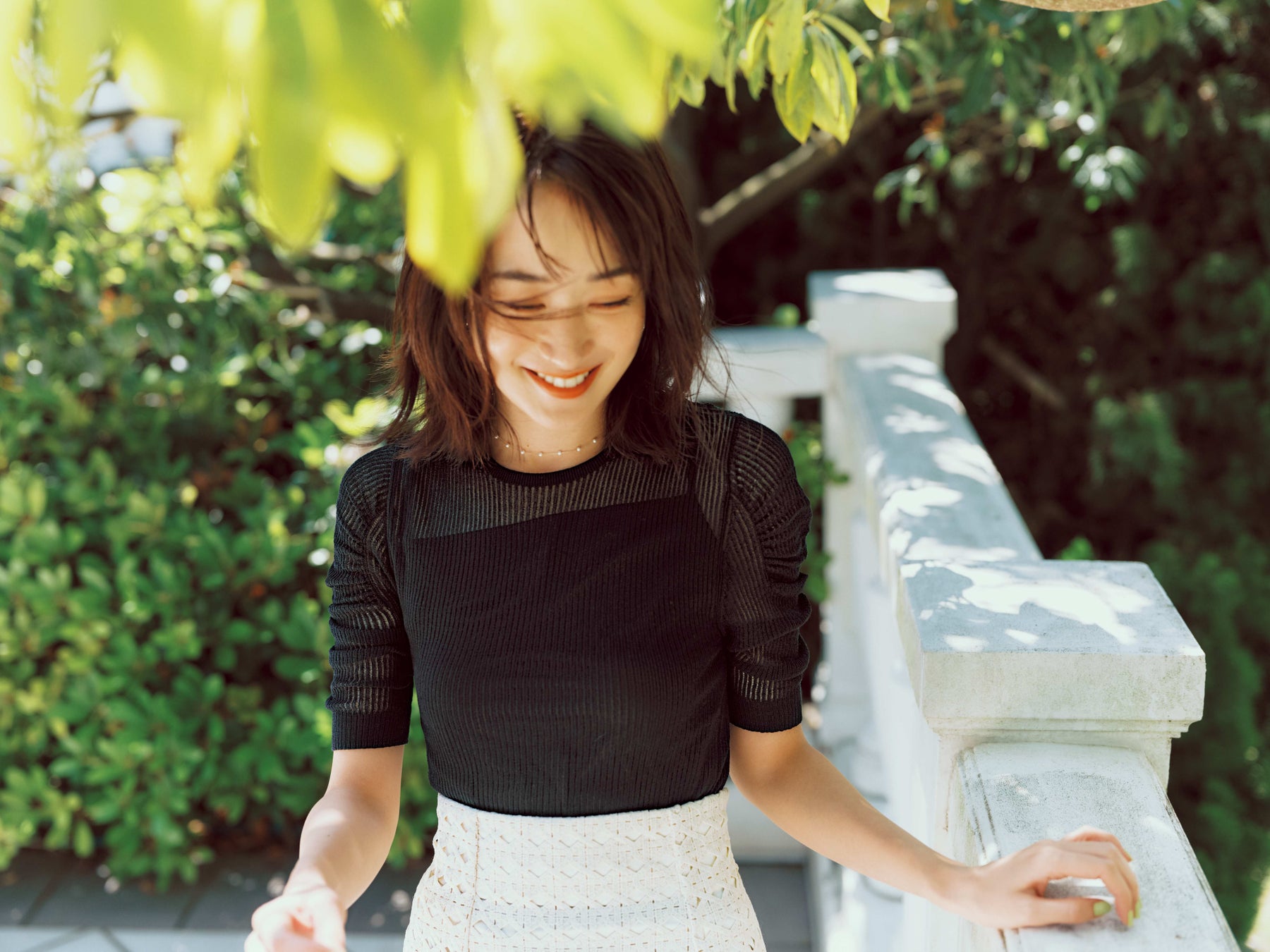 夏にぴったりな涼感あふれるトップスを、スカートとパンツそれぞれの着こなしで披露してくれました。