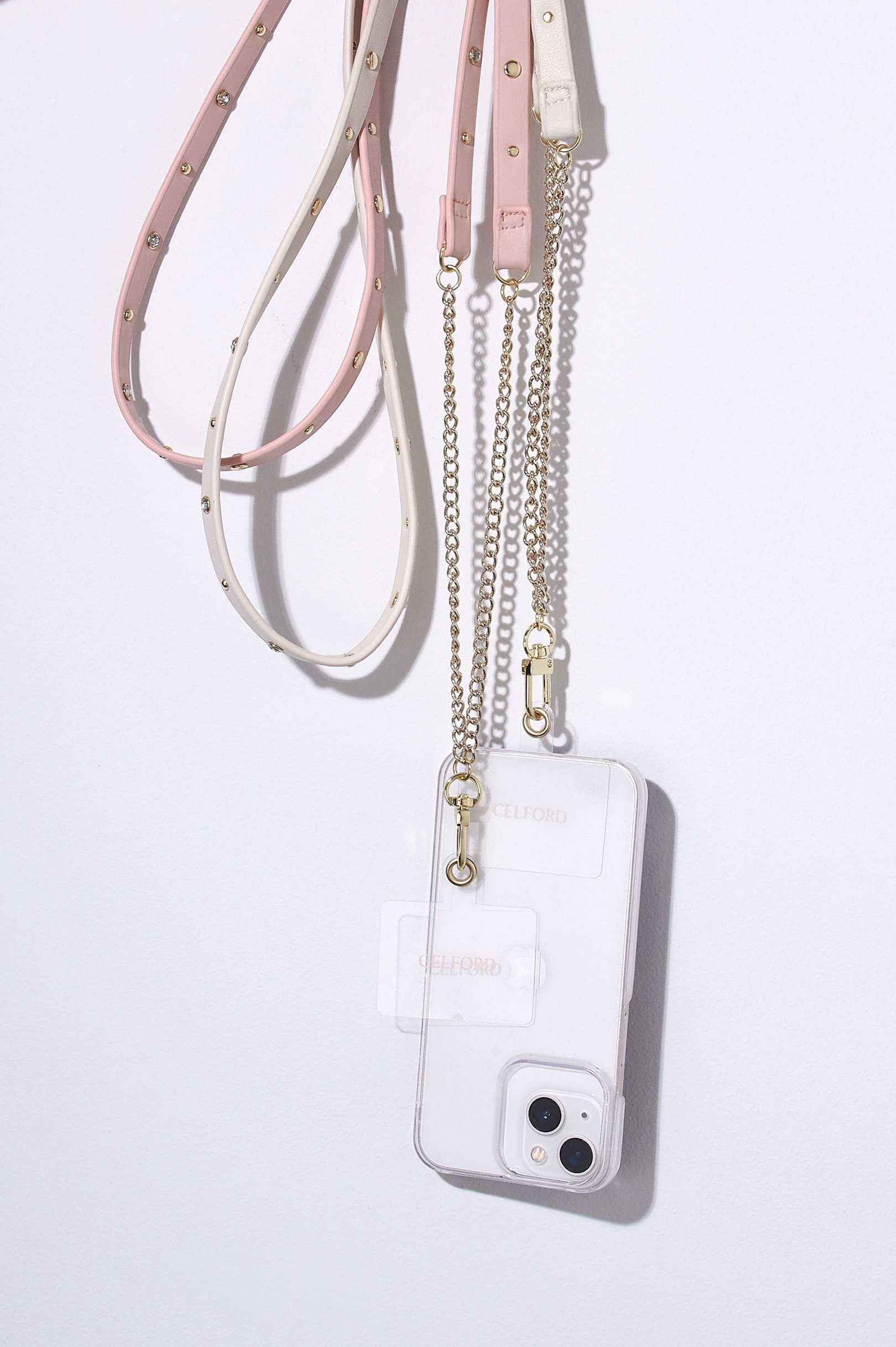 店舗・オフィシャルオンラインストアにて、トップスを含む27,500円(税込)以上お買い上げのお客様に、CELFORDオリジナル 「ビジュースタッズショルダーストラップ」アイボリー、またはピンクのどちらかをプレゼントさせていただきます。