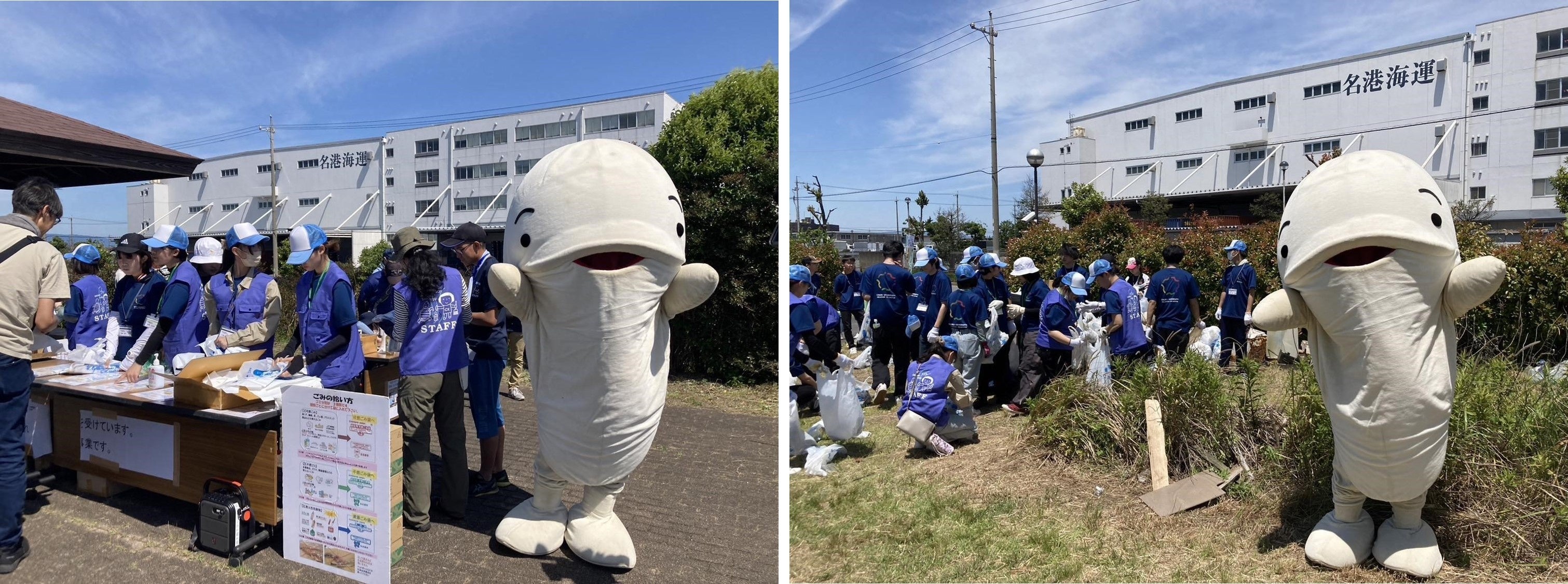 今回はテレビ愛知よりメリ夫くんも駆け付けました。三河湾に住み、海洋ごみに悩むメリ夫くんを助けることもできると、参加者の意識も上がりました。