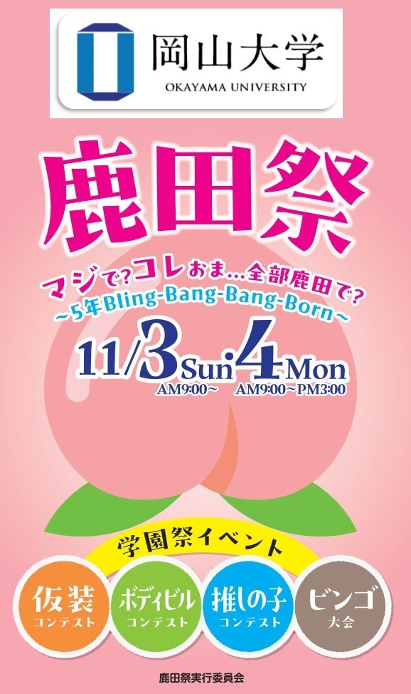 【岡山大学】岡山大学祭「鹿田祭」〔11/3日~4月・祝, 岡山大学鹿田キャンパス〕