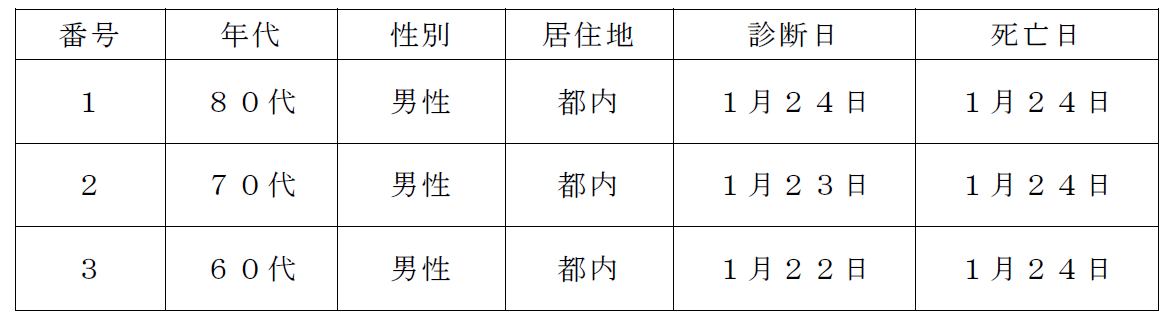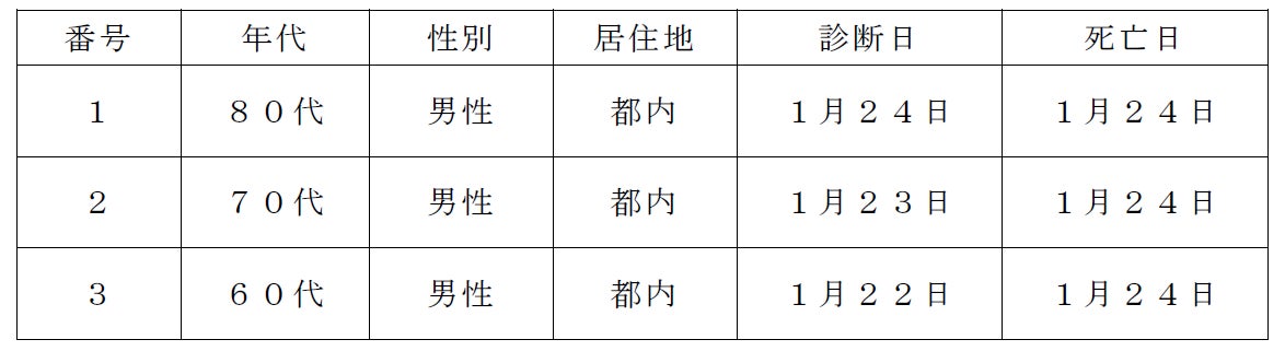 都内で新型コロナウイルスに感染した方が死亡されましたのでお知らせします。